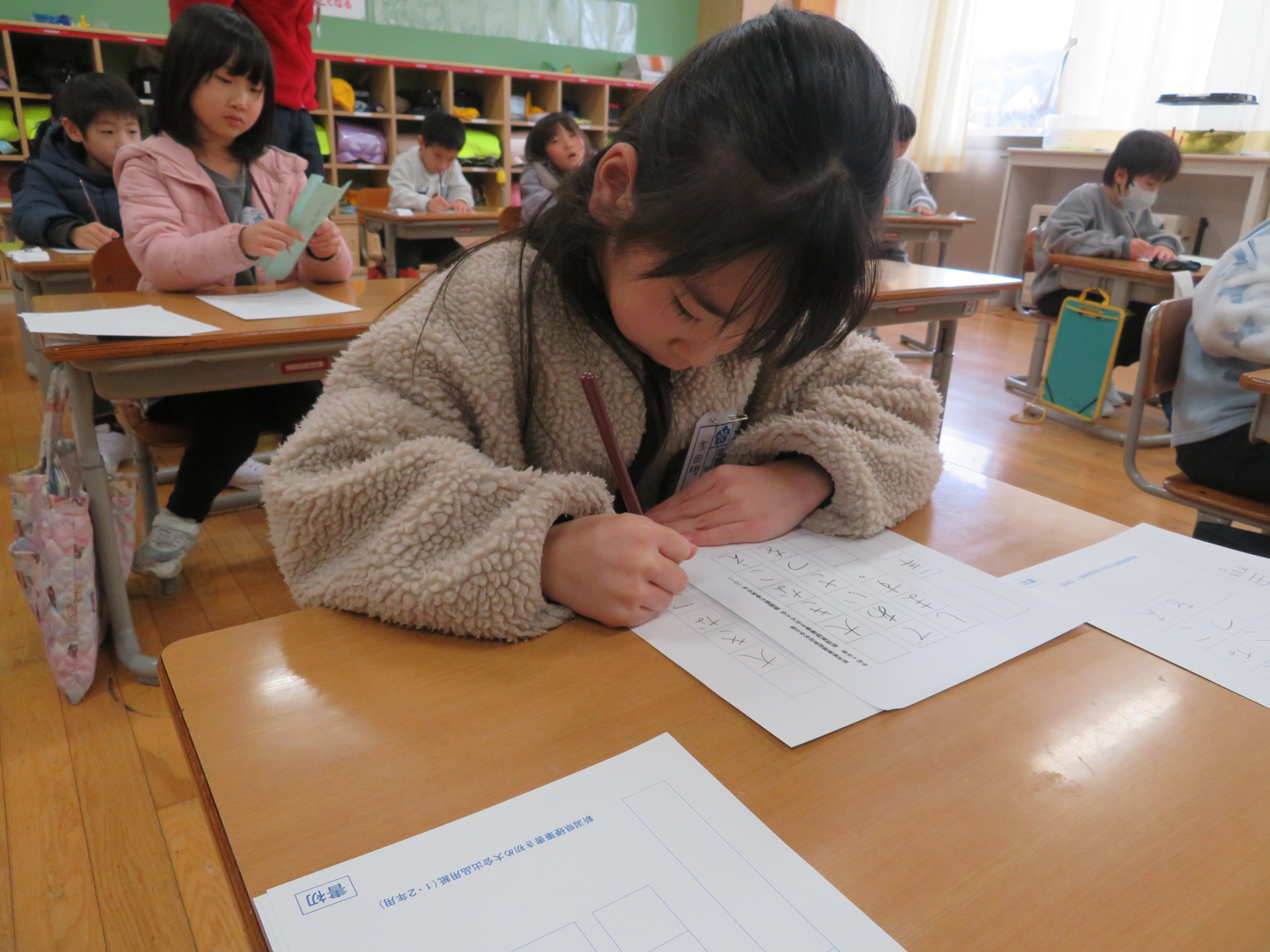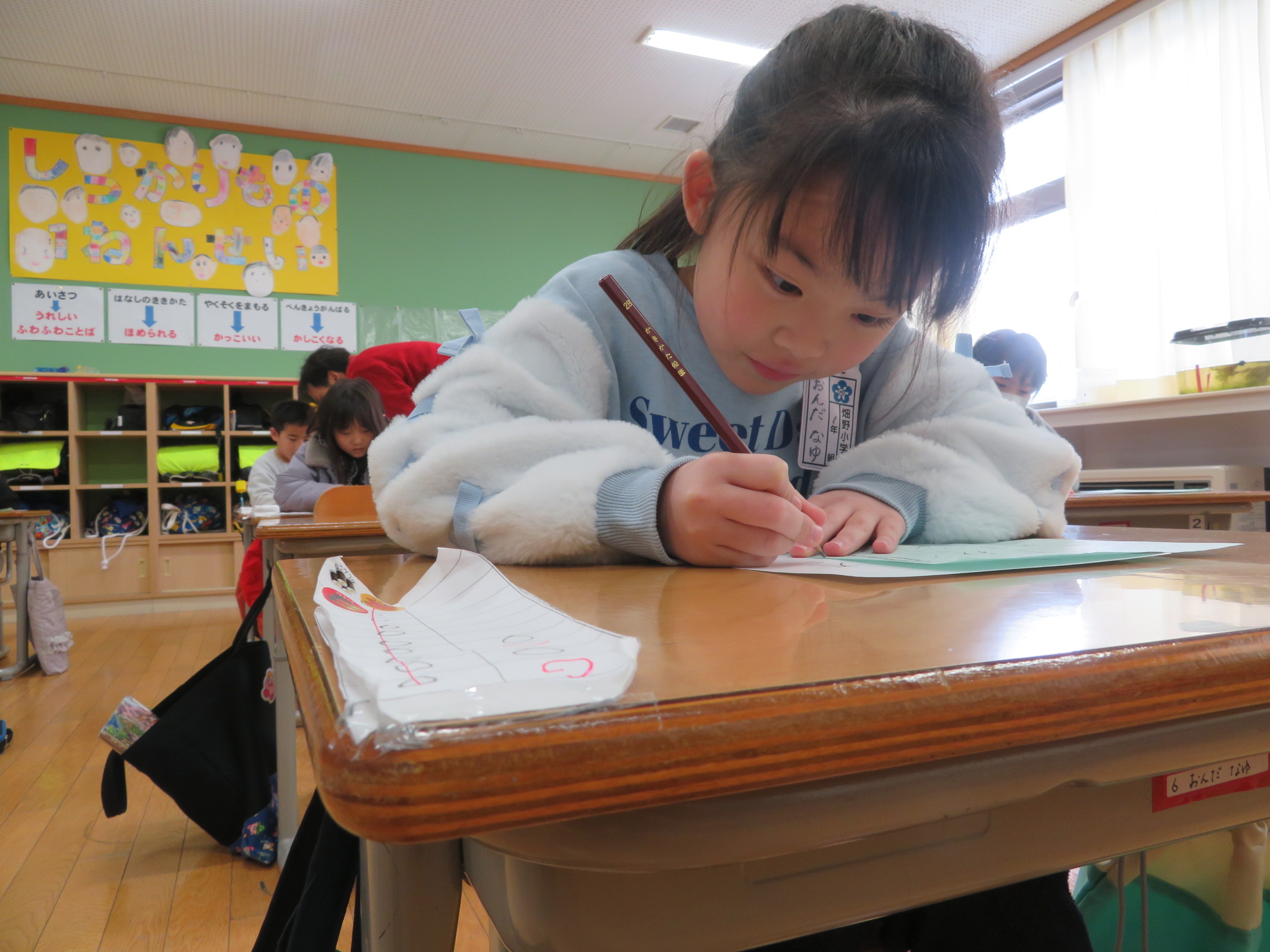 冬休みにも練習してきただけあって、どの子も筆遣いが慣れていい字を書くようになっています。