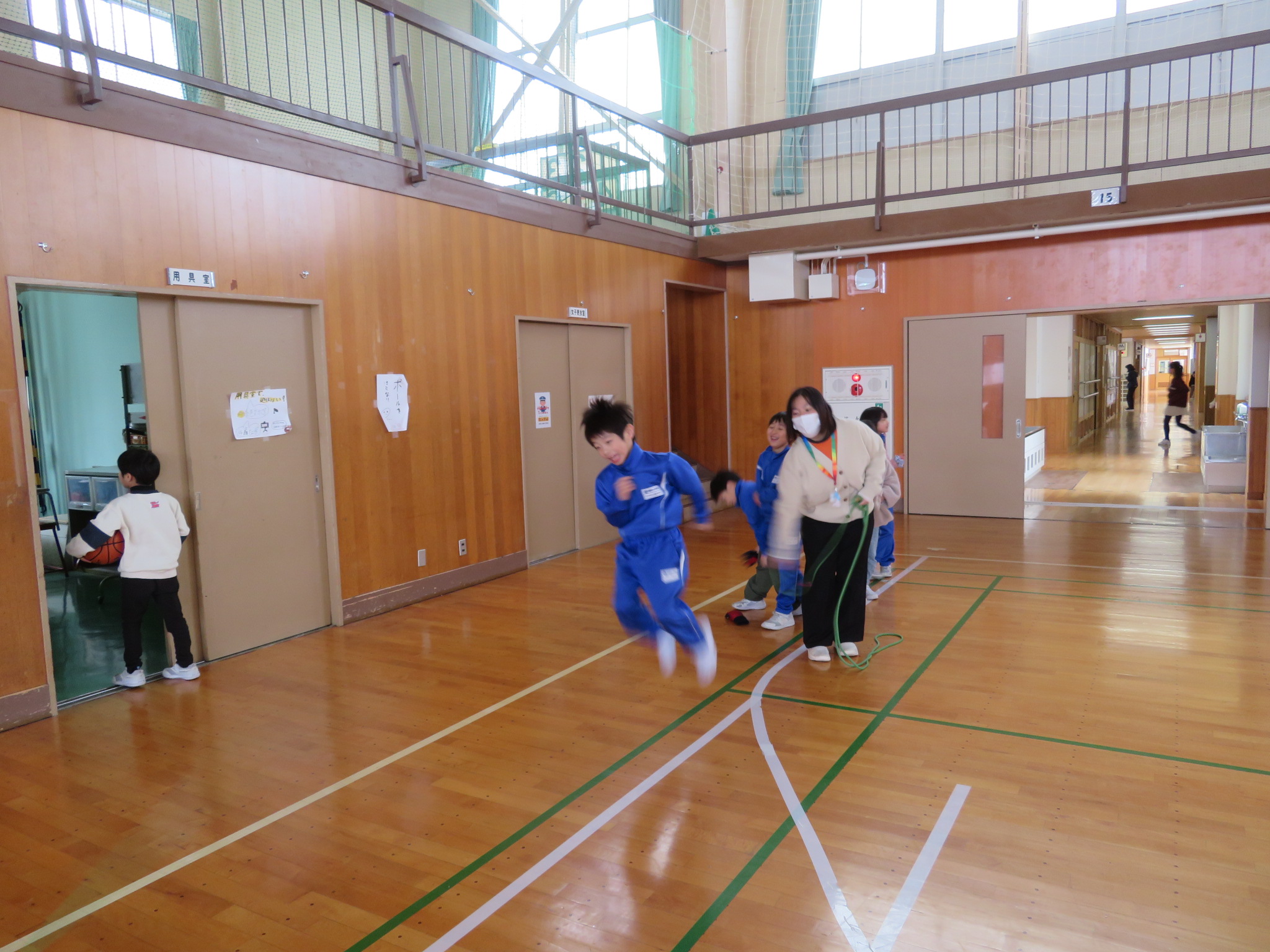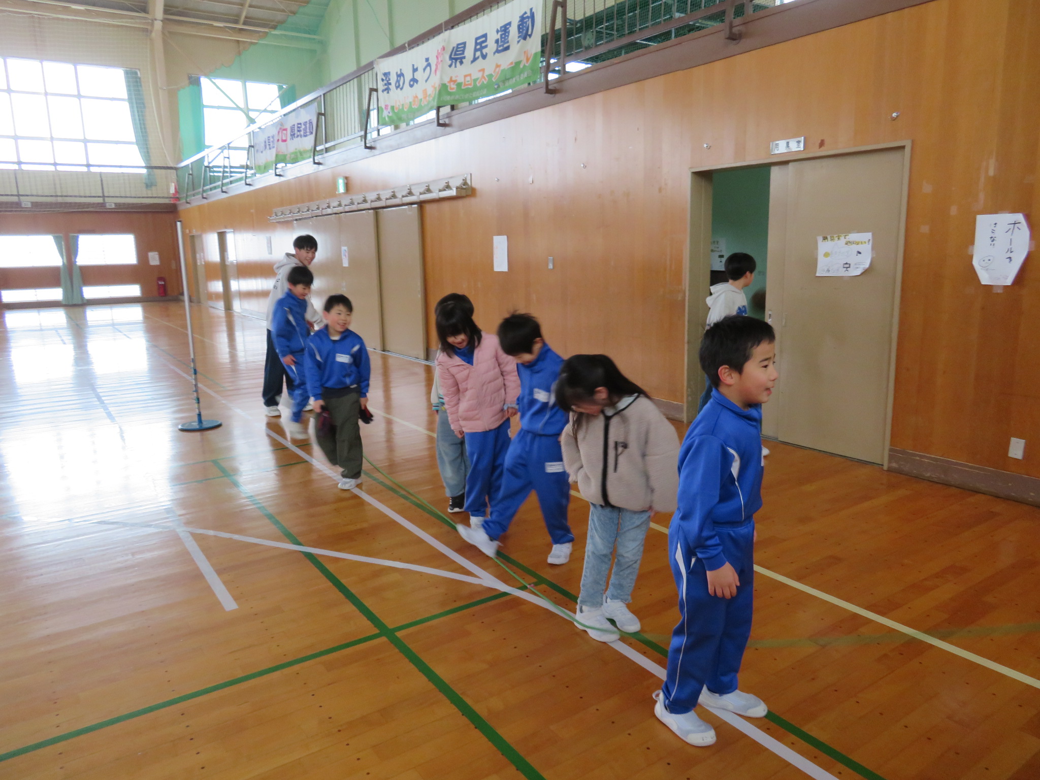 今日の行間(20分)休み時間はあいにくの雨となり、外で雪遊びをしたかった子たちには残念でした。でも、そこは子どもたち。外がだめなら体育館で元気に遊びます。1年生と一緒に遊ぶ6年生の姿もあって、すごく微笑ましいです。