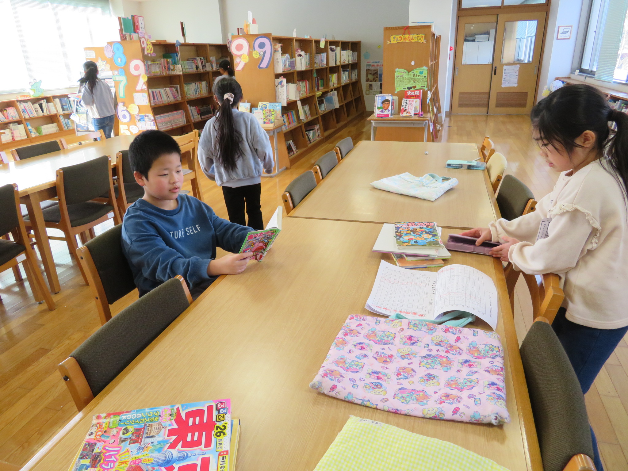 体育館や外で遊ぶのもいいですけど、読書をするのもいいです。