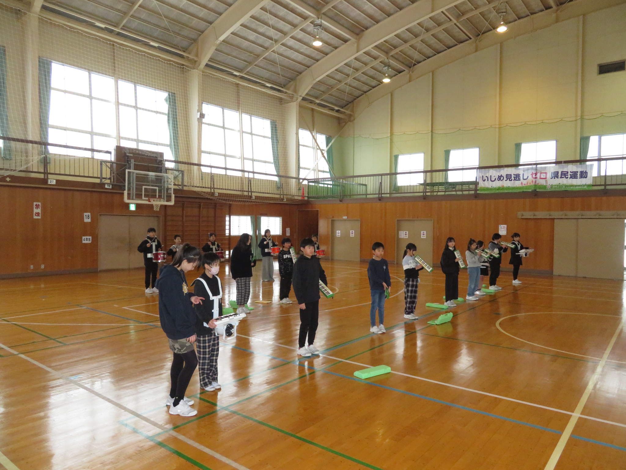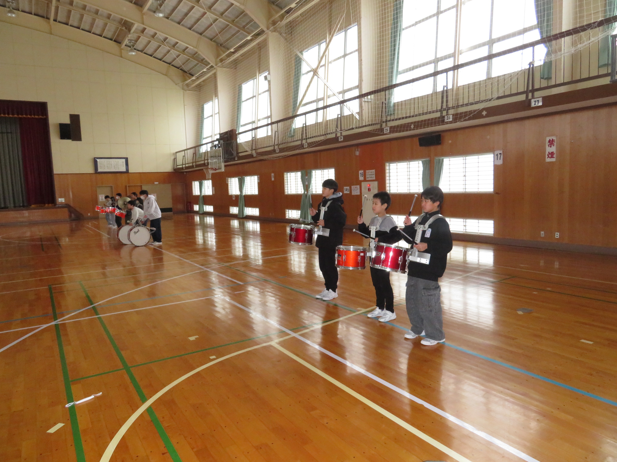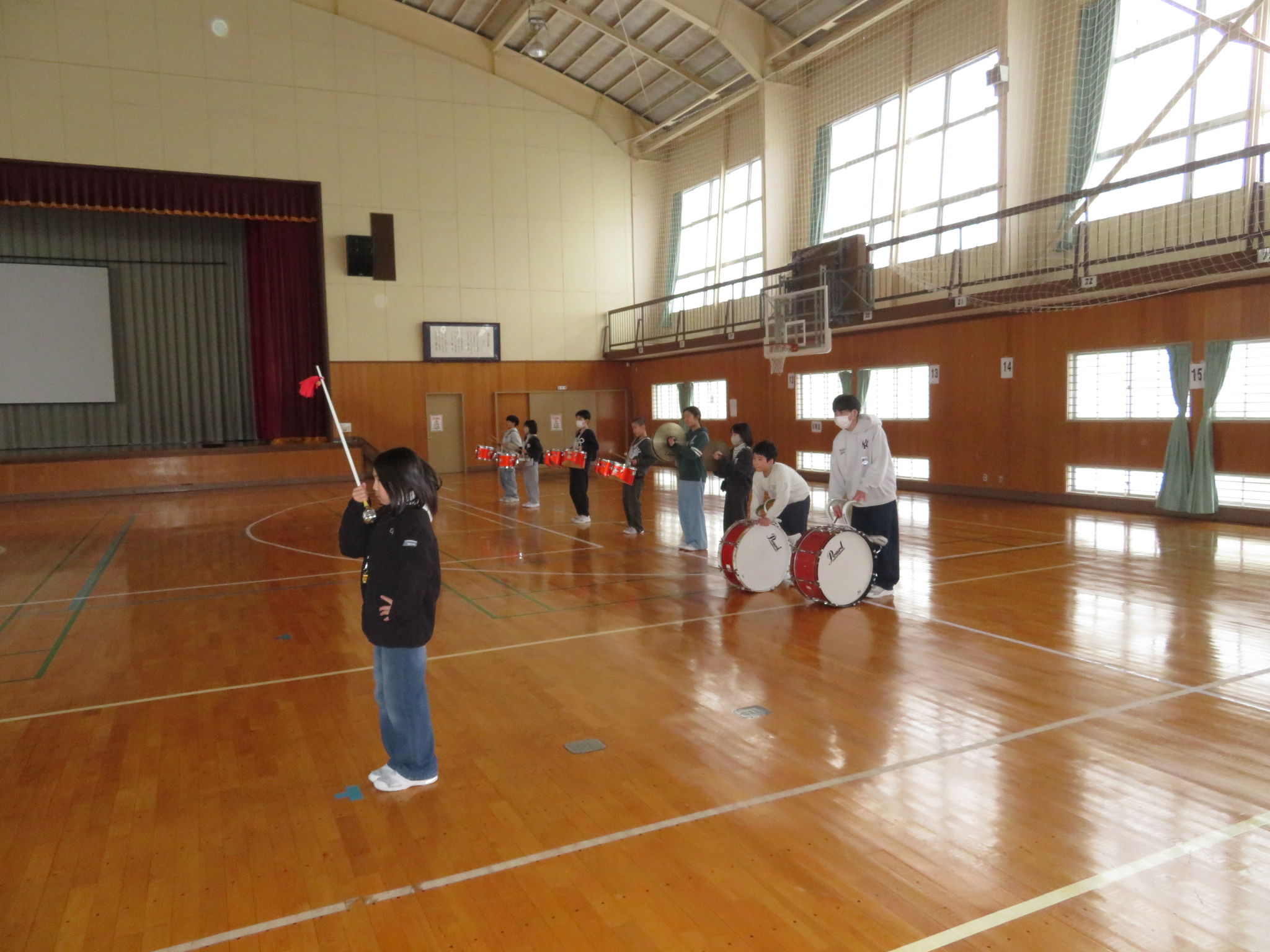 体育館組は、全体としてまとまった動きができるかを指揮に合わせて練習をしました。緊張感が高まってきていました。