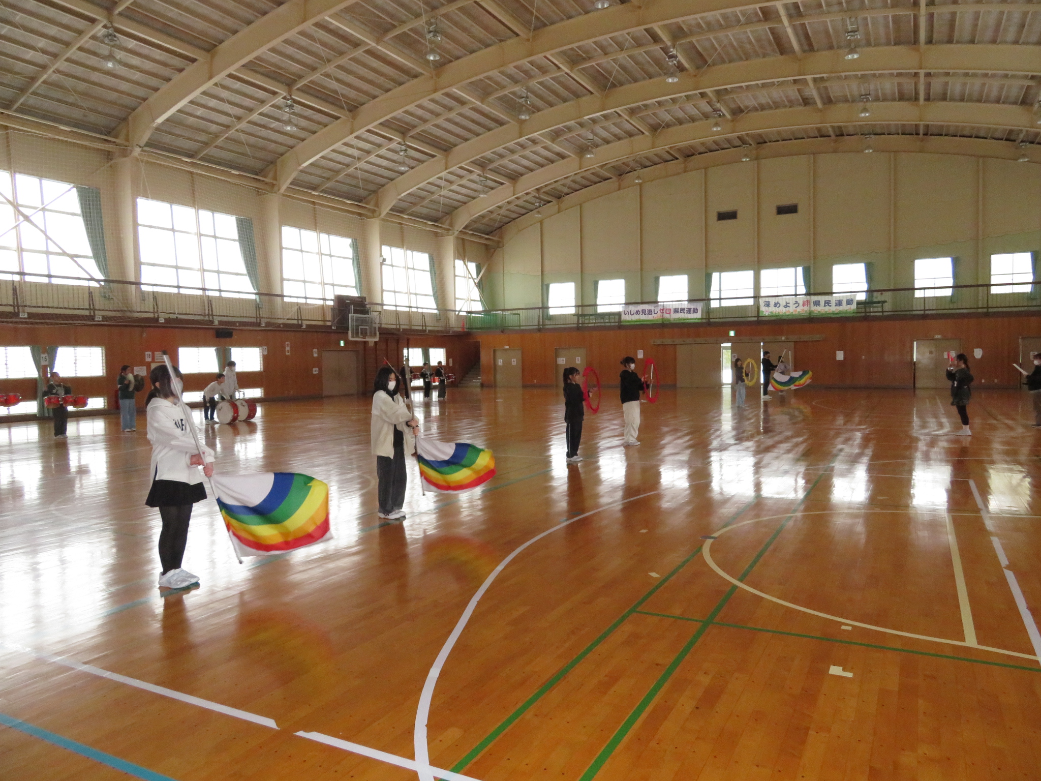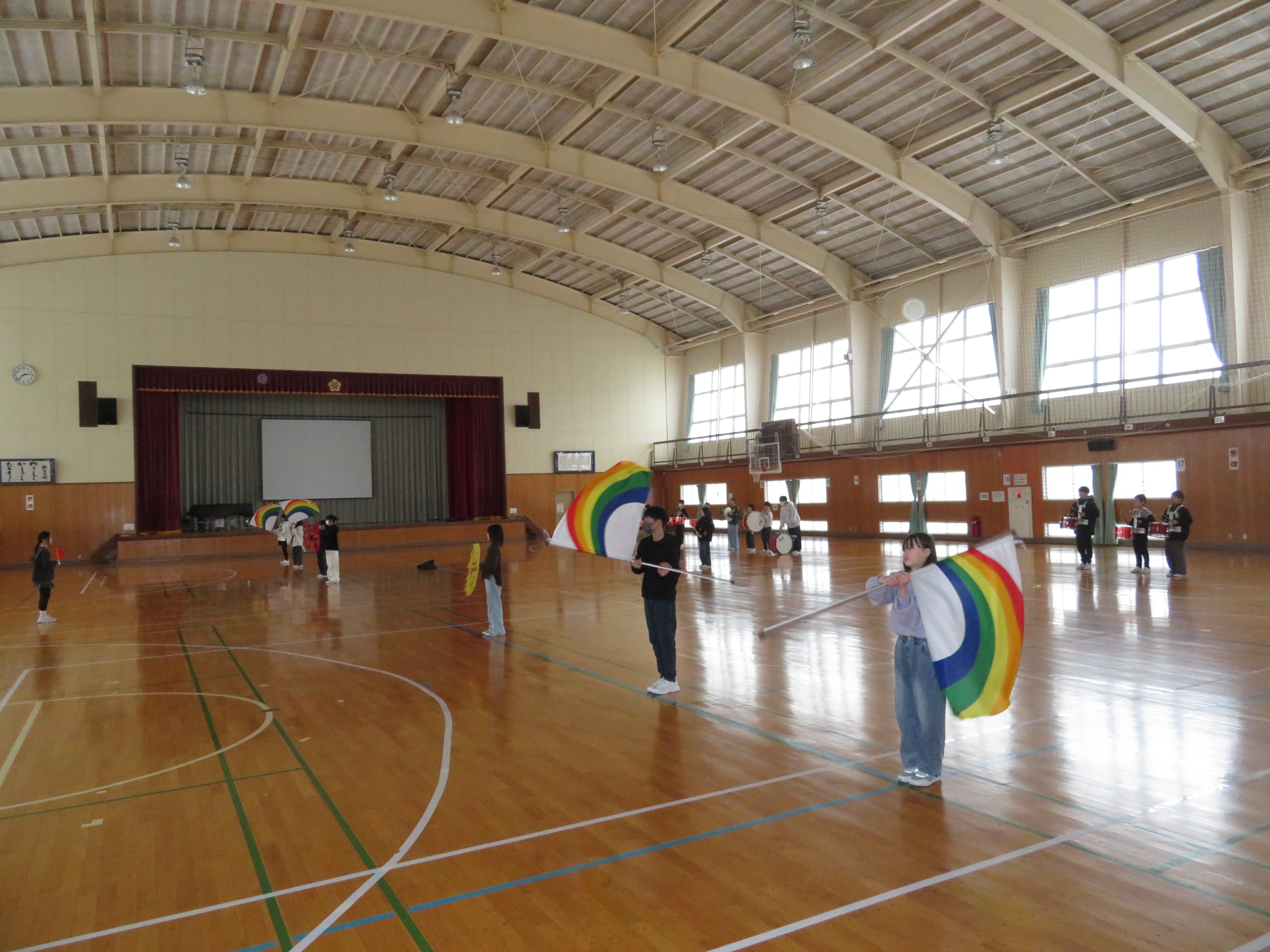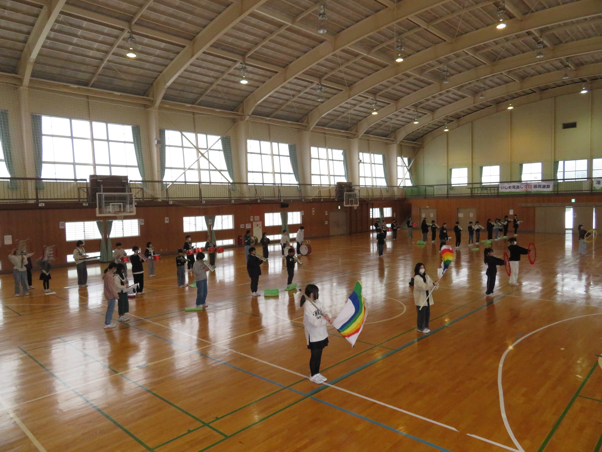 体育館組は、全体としてまとまった動きができるかを指揮に合わせて練習をしました。緊張感が高まってきていました。