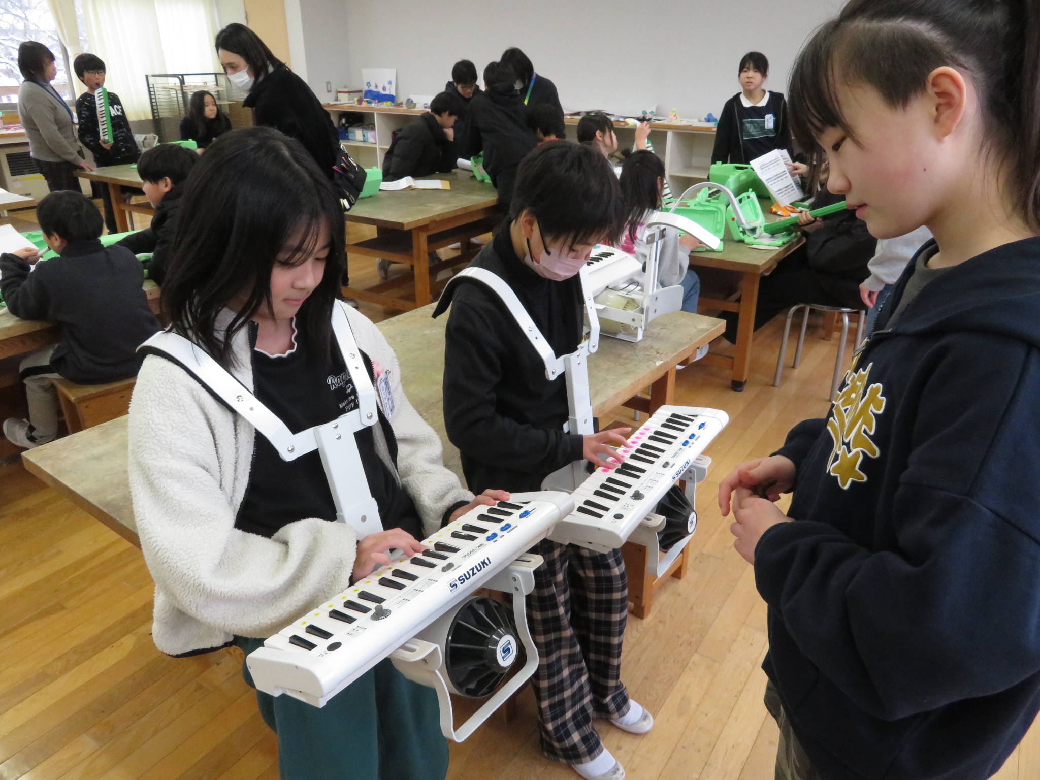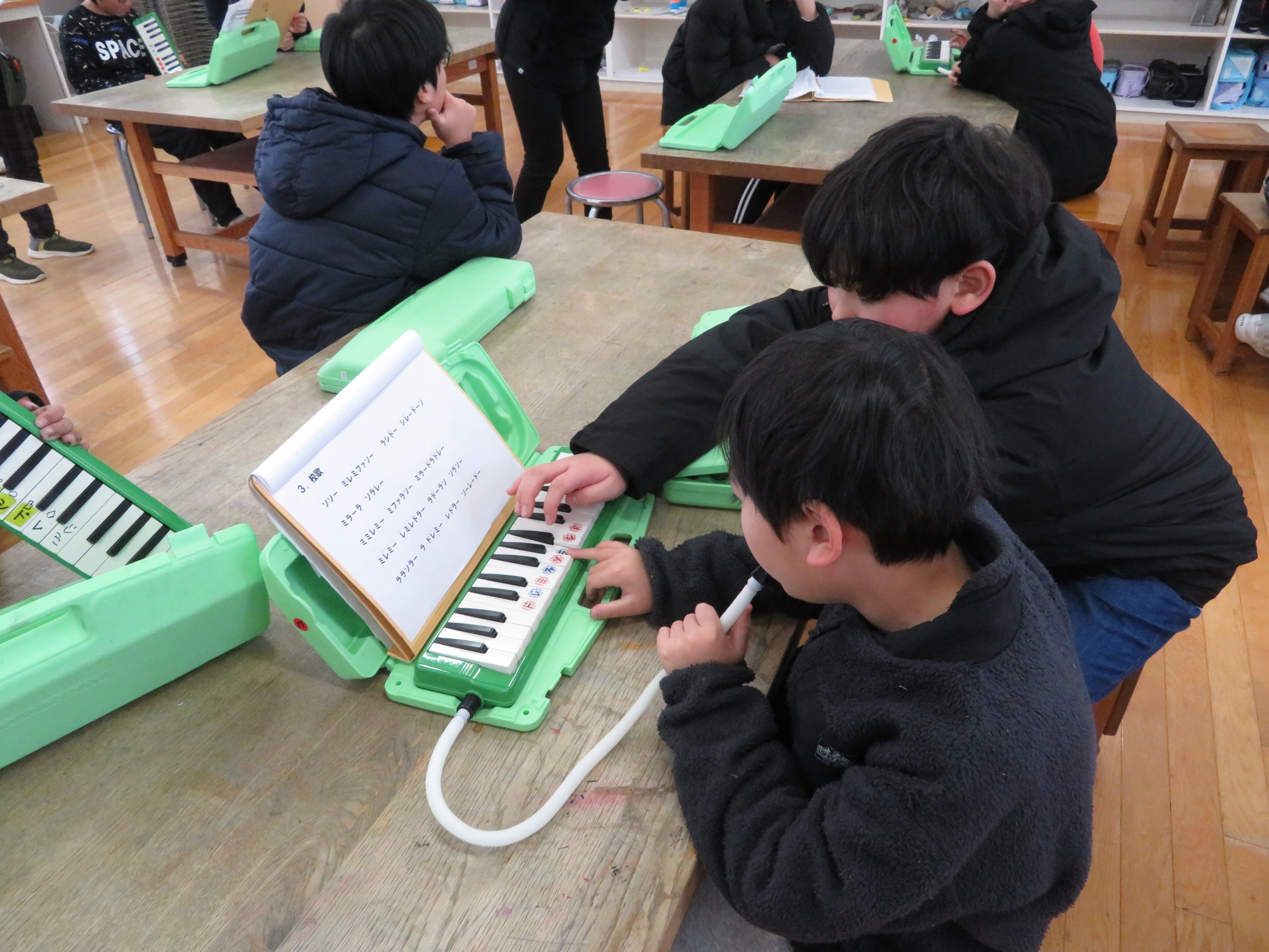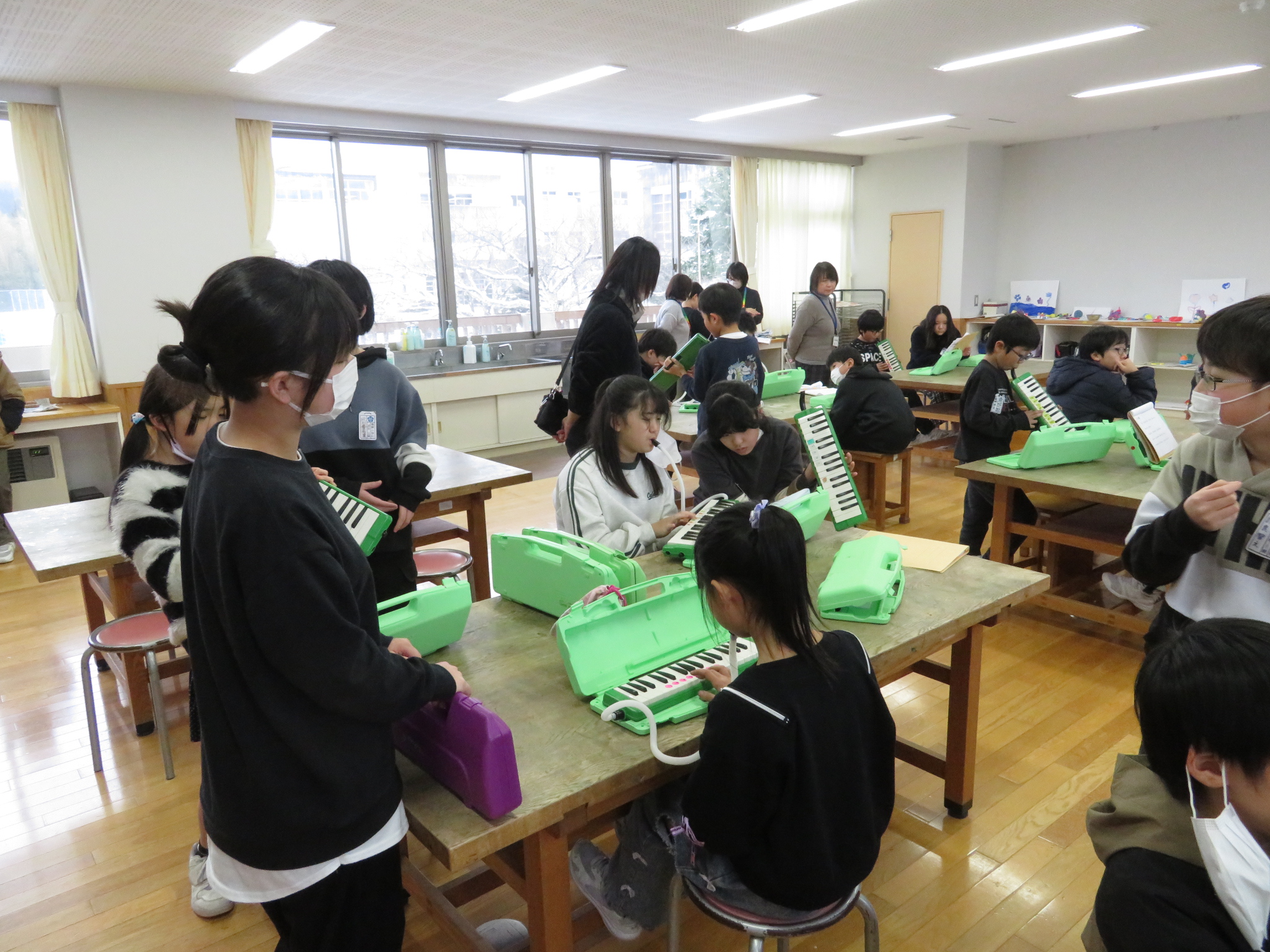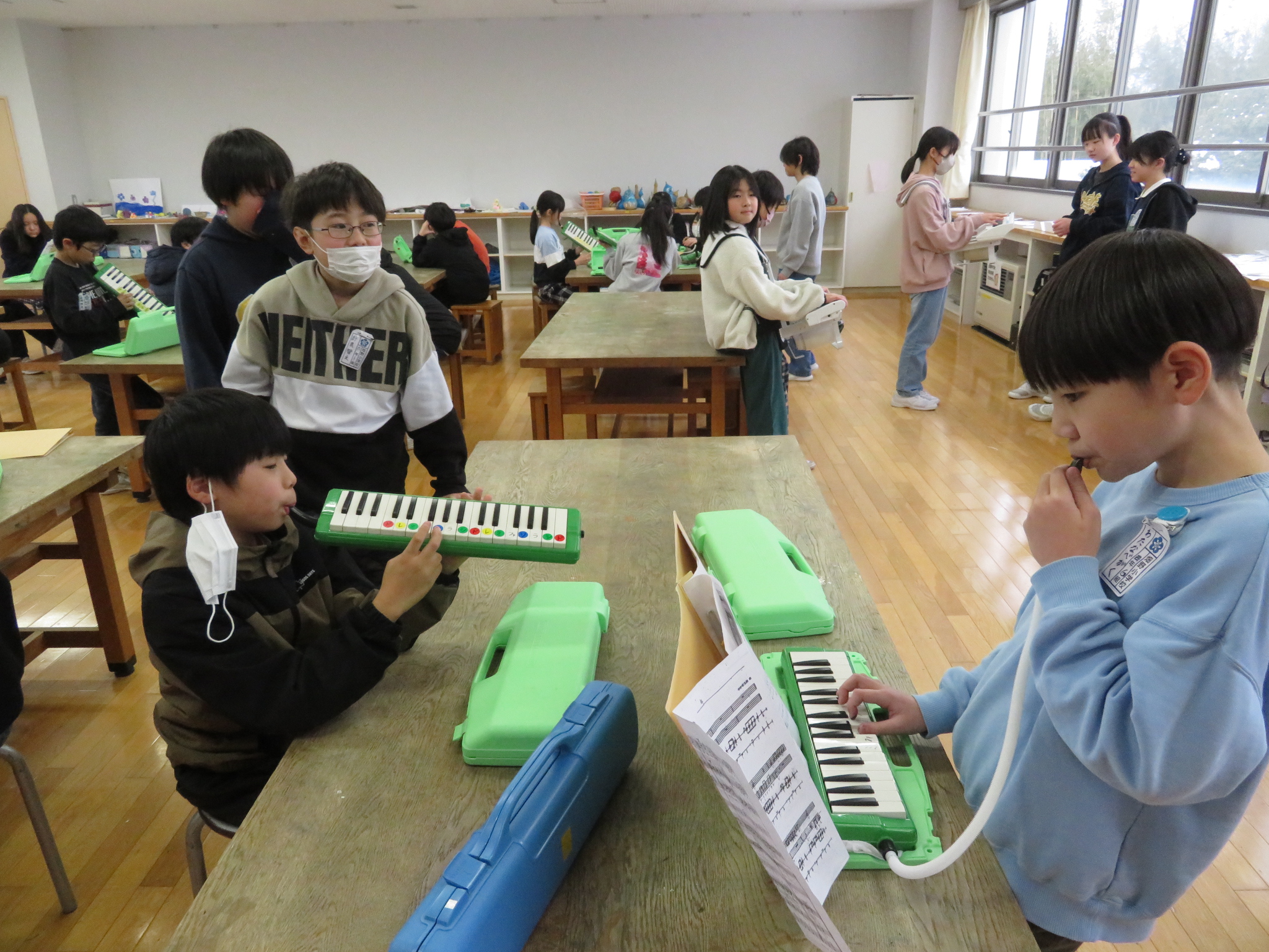 演奏組は、図工室で個人練習に励んでいました。6年生が優しくコーチしている姿が素敵でした。