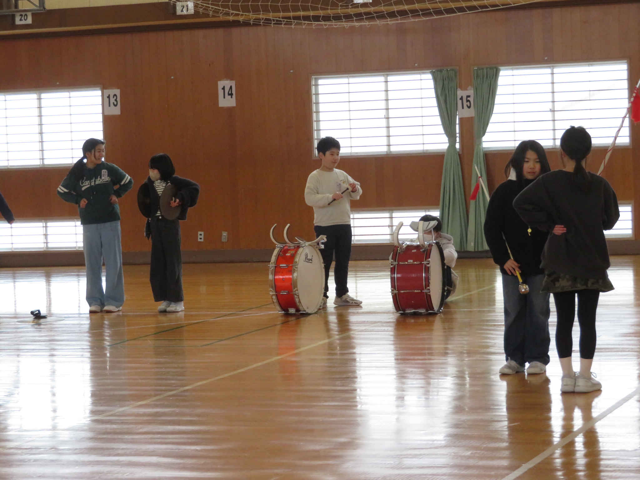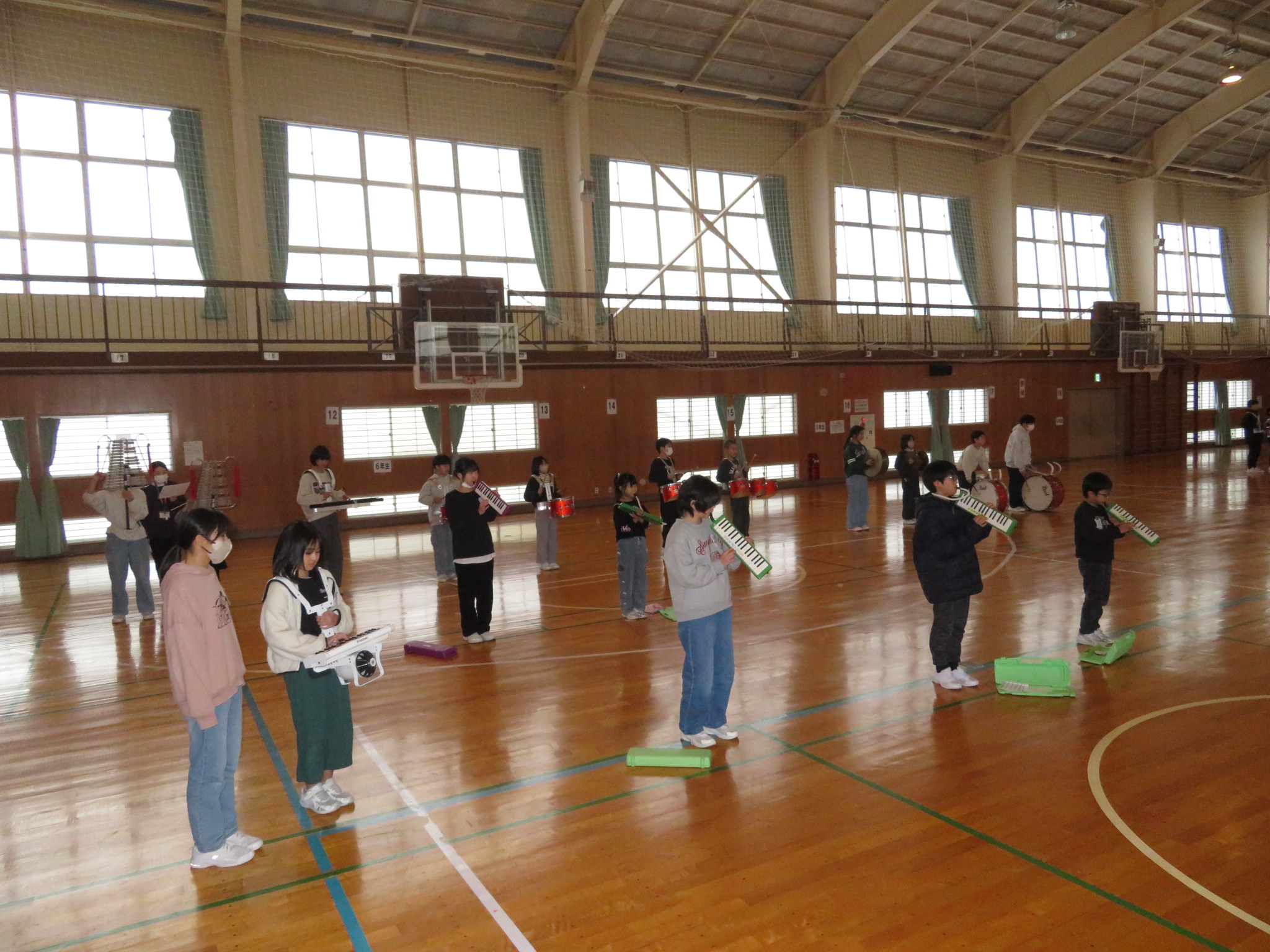 最後に体育館で全体で合わせて練習をしました。ここでも演奏後に6年生からのアドバイスが見られます。