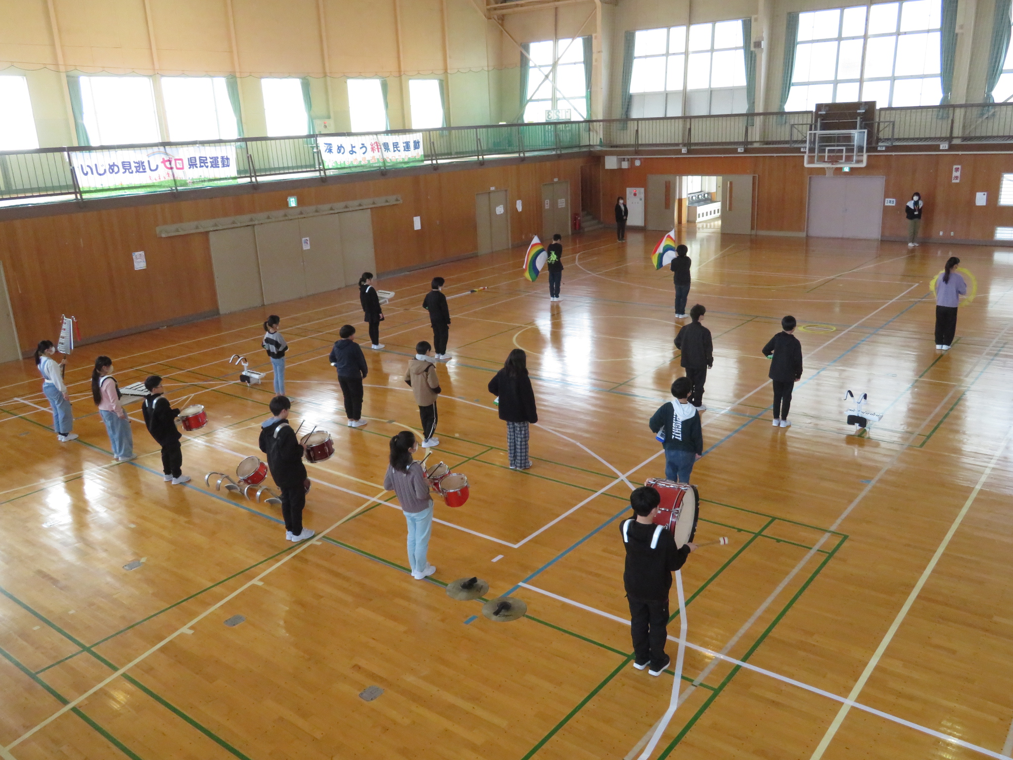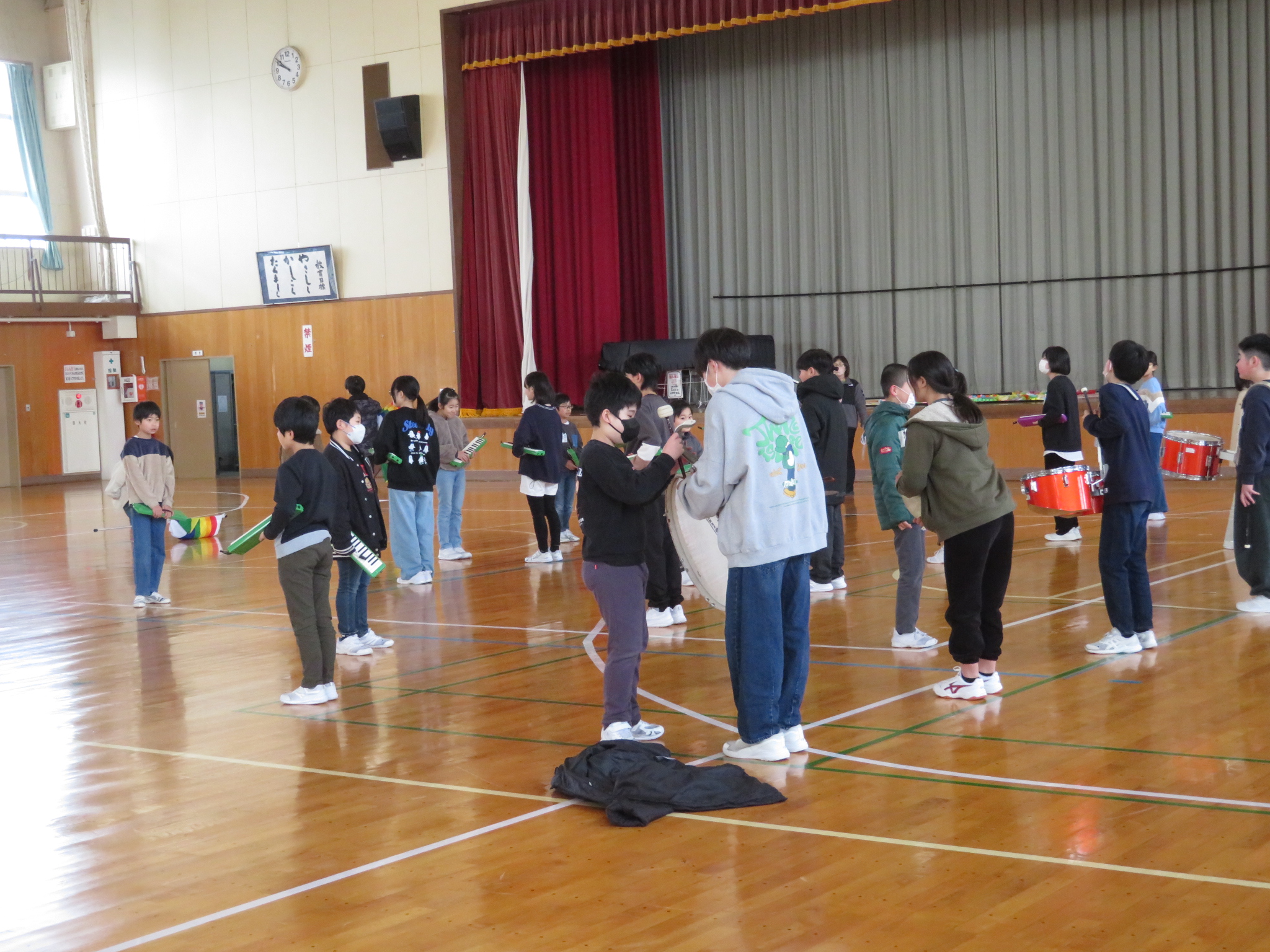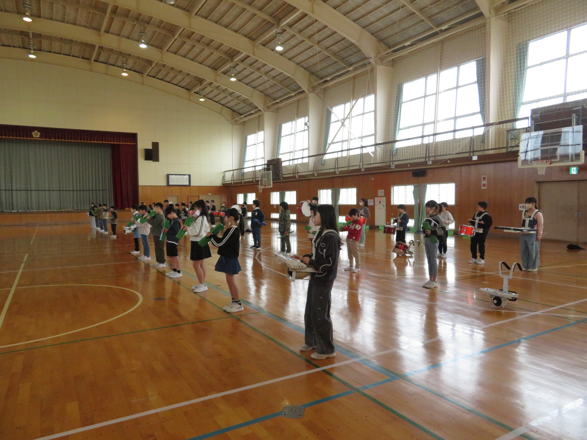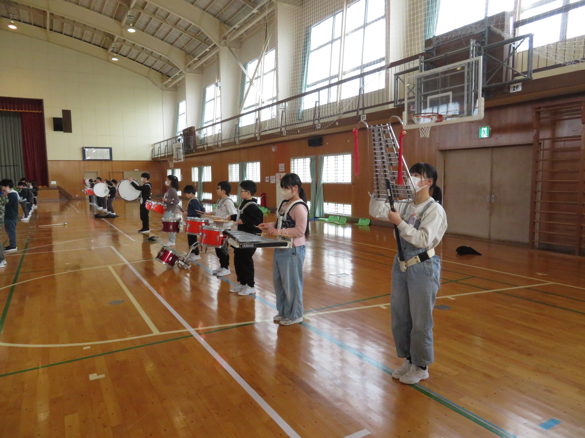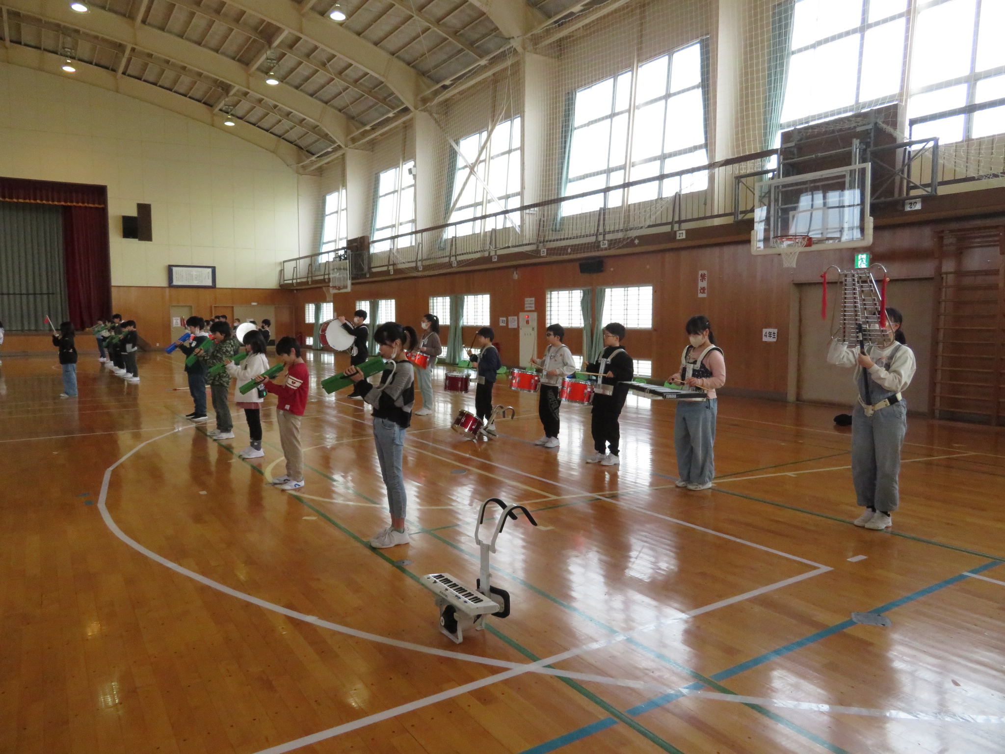 マーチングバンドの引継式練習(4・5・6年生)