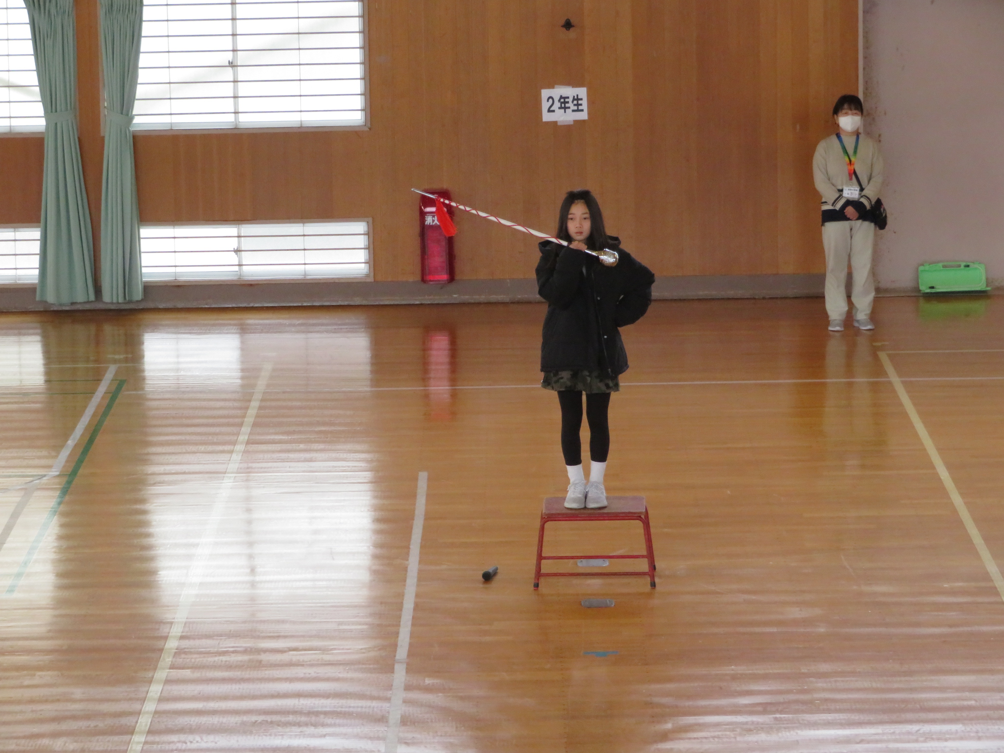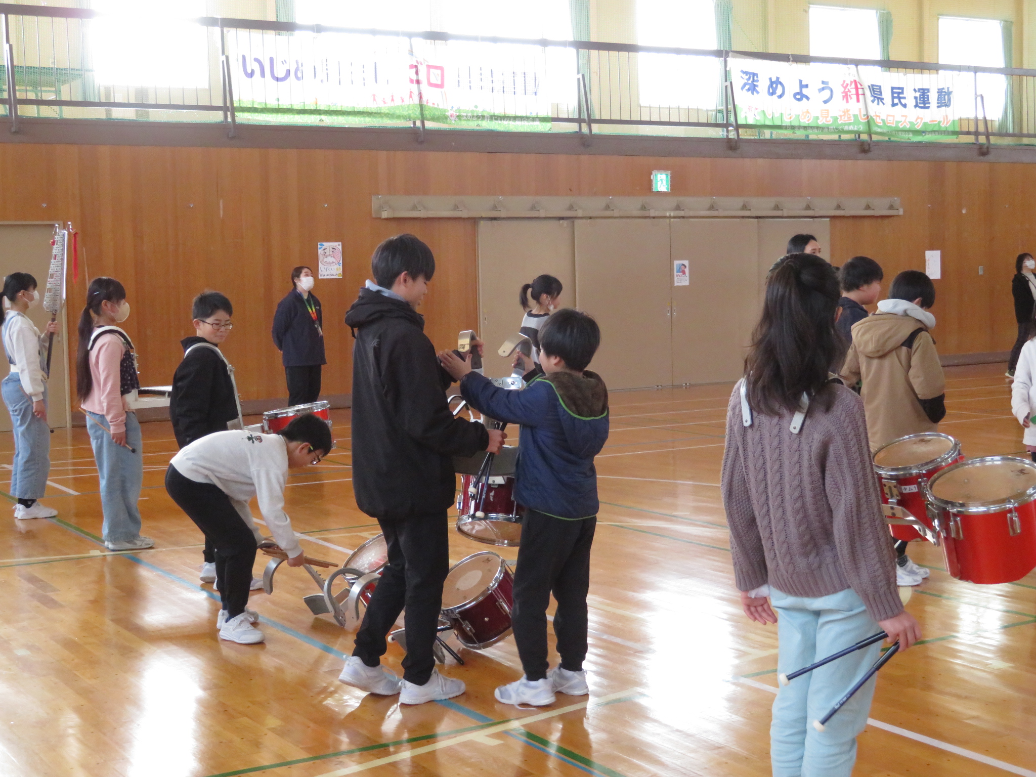 6年生から新メンバーの4年生に楽器や道具を引き継ぎます。