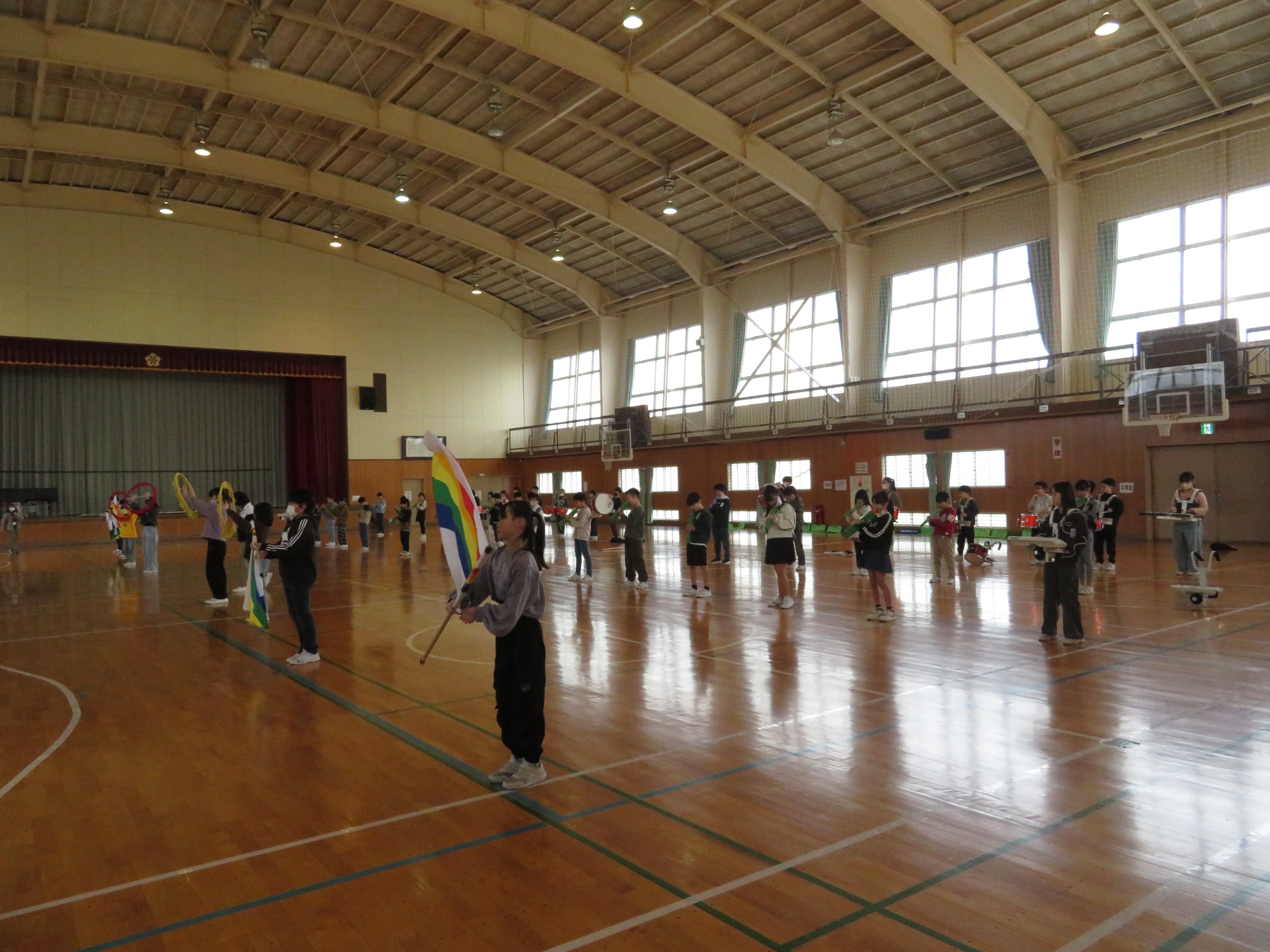 今日は、4~6年生が初めてそろって体育館練習ができました。