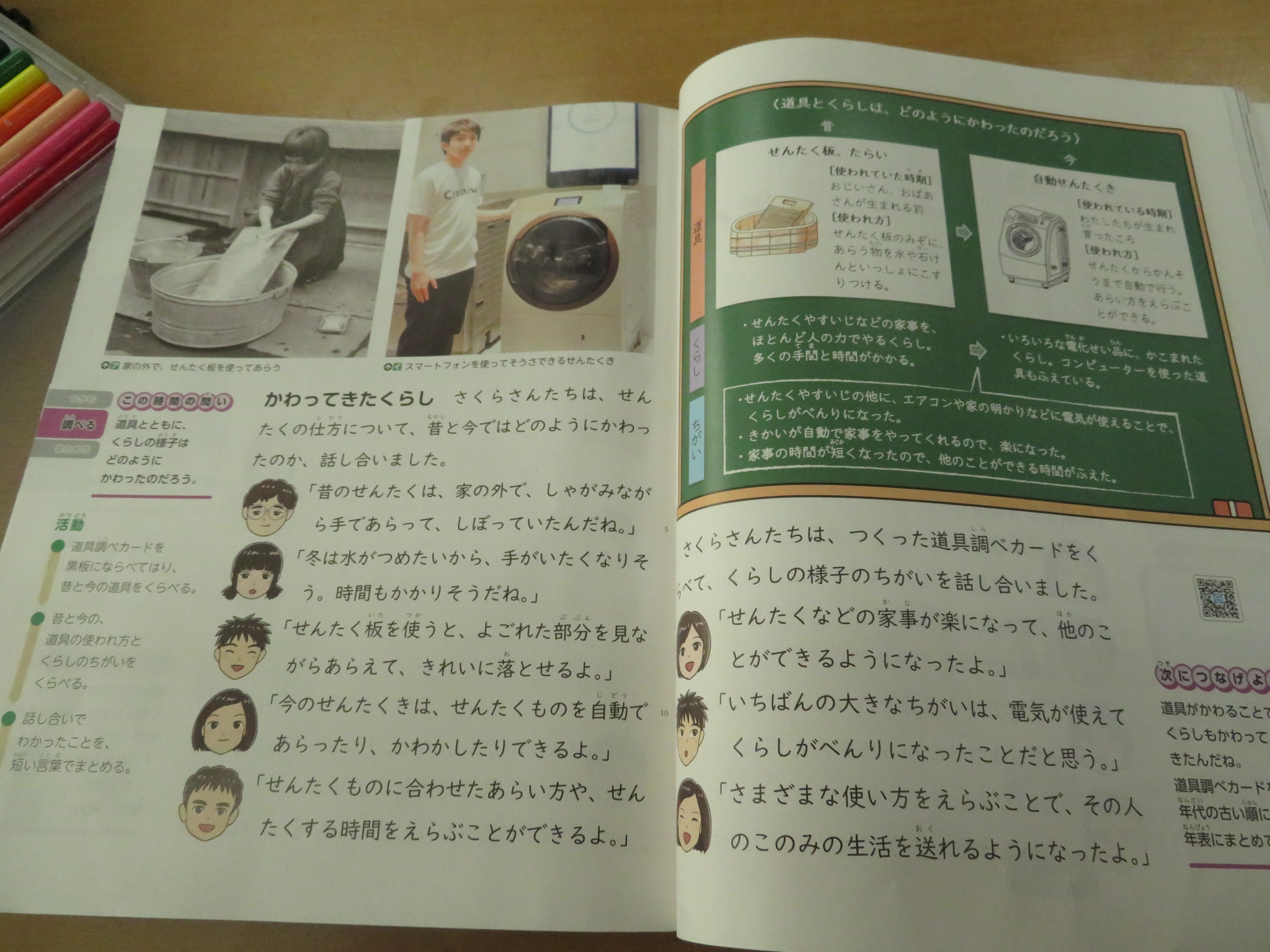 3年生は社会の時間に、昔と今の生活を比べて、「かわってきたくらし」という単元を学習しています。