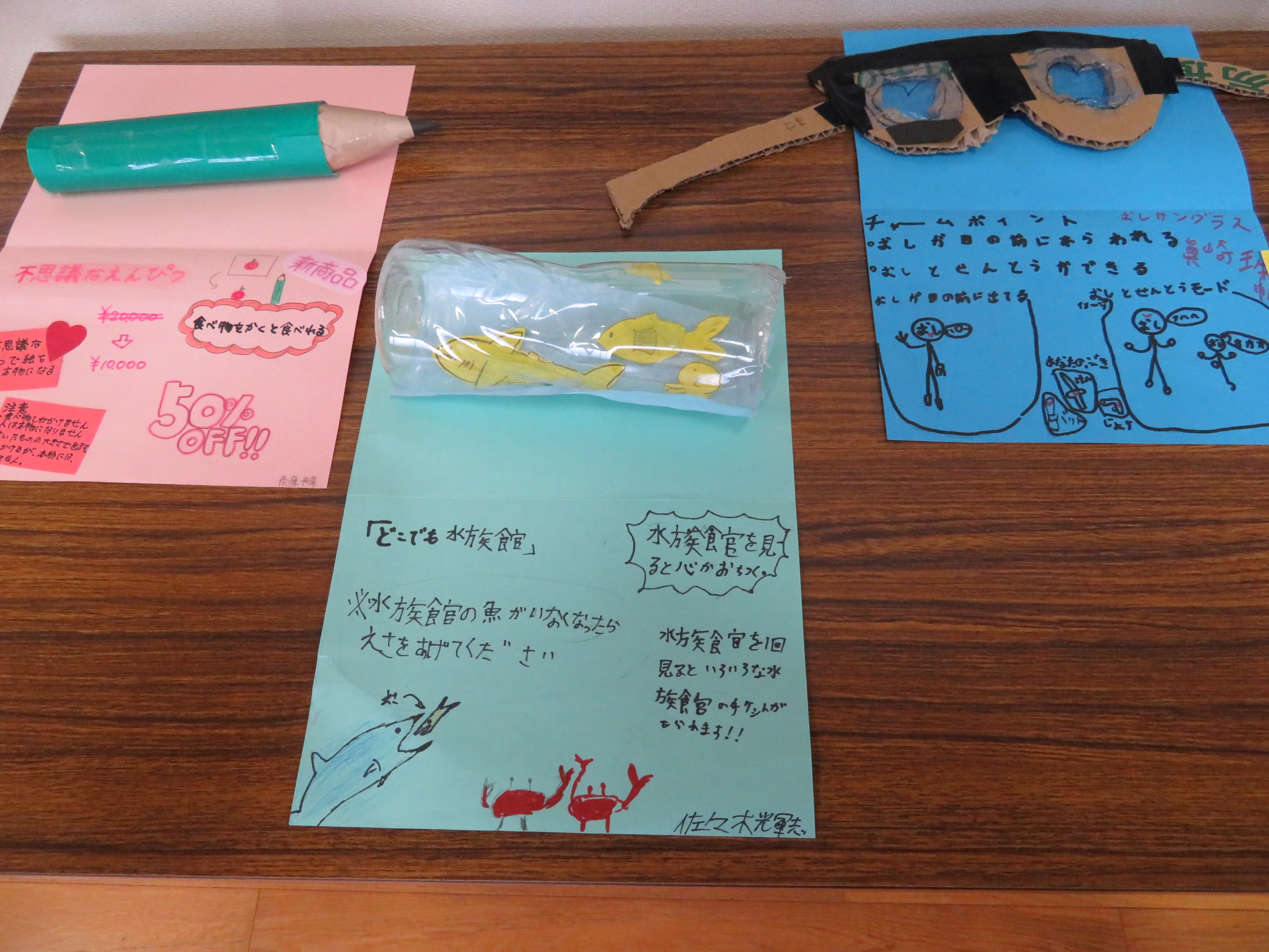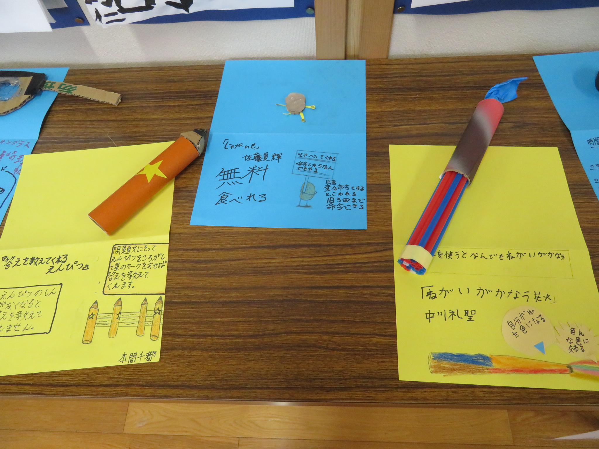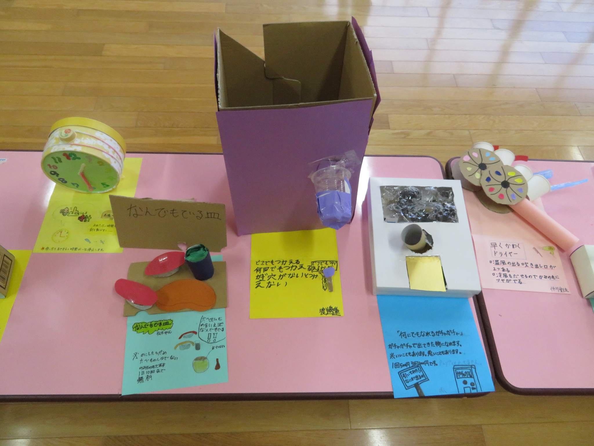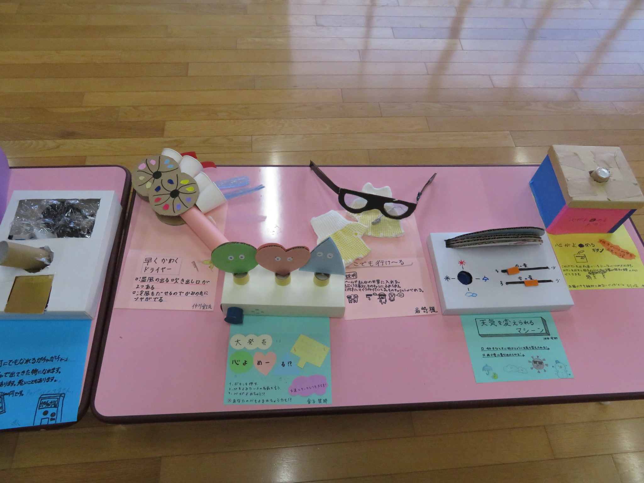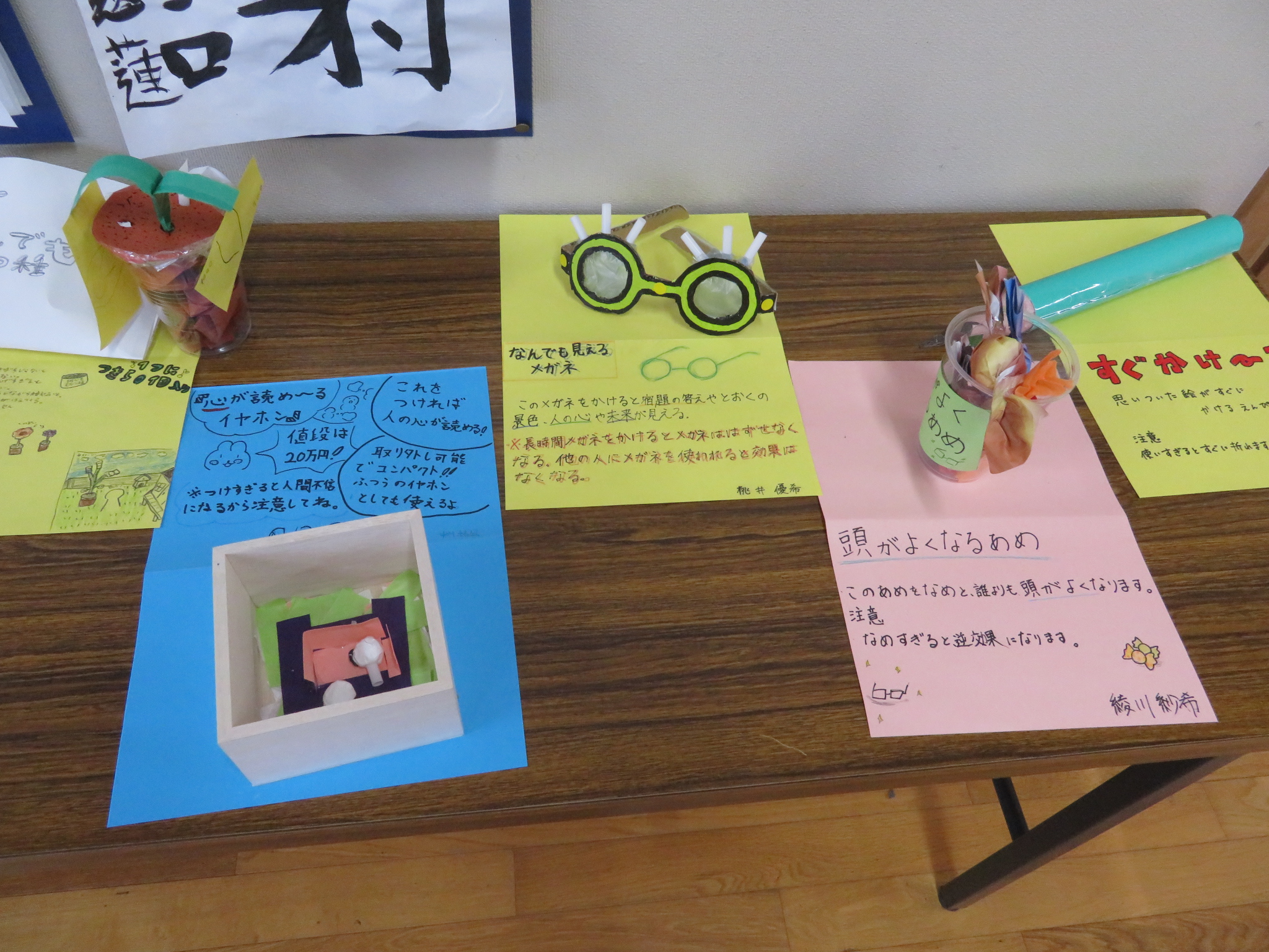 「あったらいいな」と思える夢の品物を、身近な材料で作りました。なかなか奇抜なアイデアやおもしろ工夫が見られる製品がいっぱいです。本当に「あったらいいな」と思える品々です。