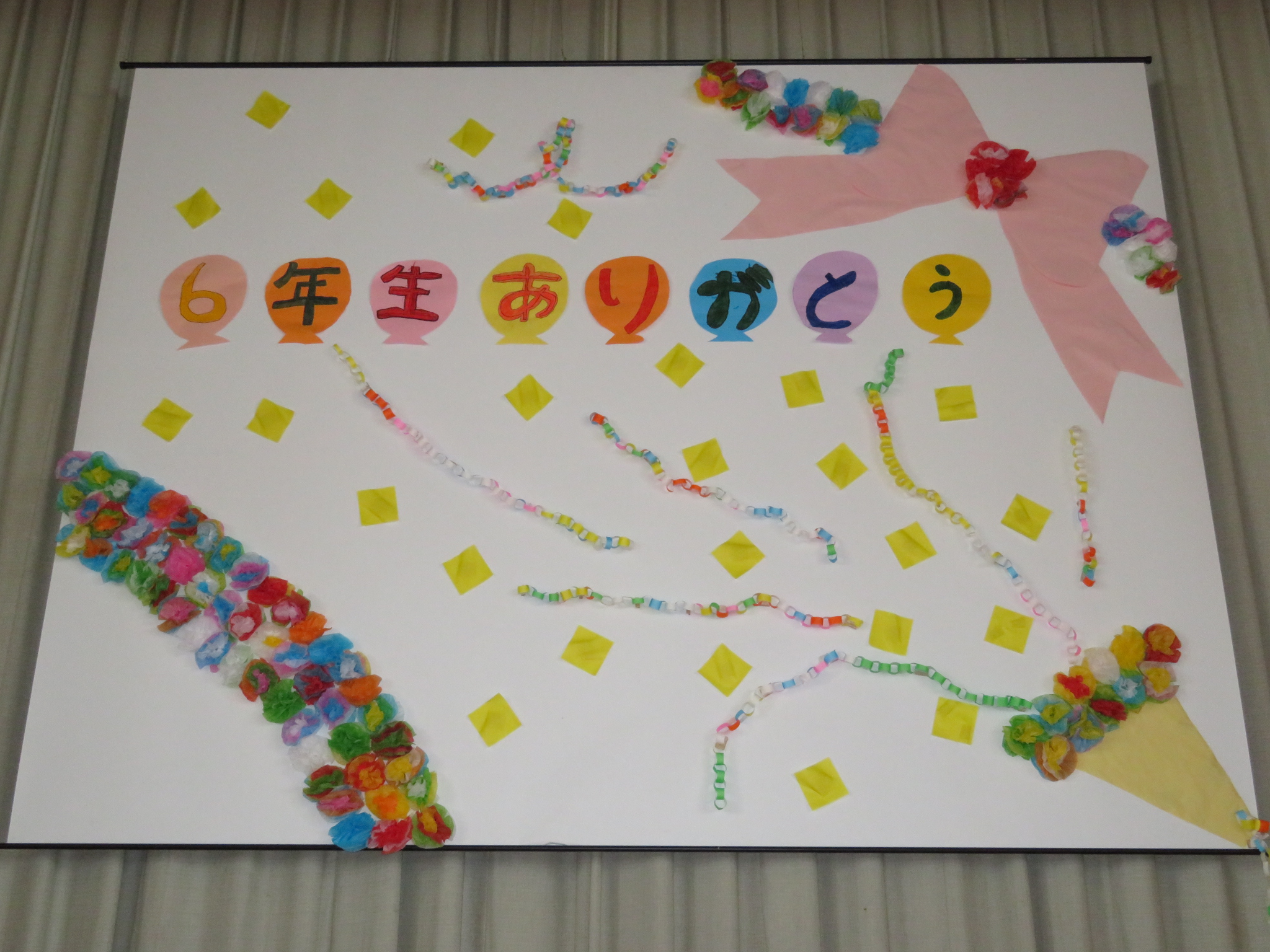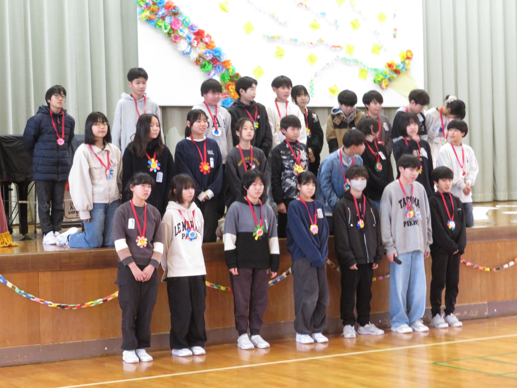 5年生を中心に、1~4年生が「6年生ありがとう」の気持ちを前面に表現していました。温かい会でした。