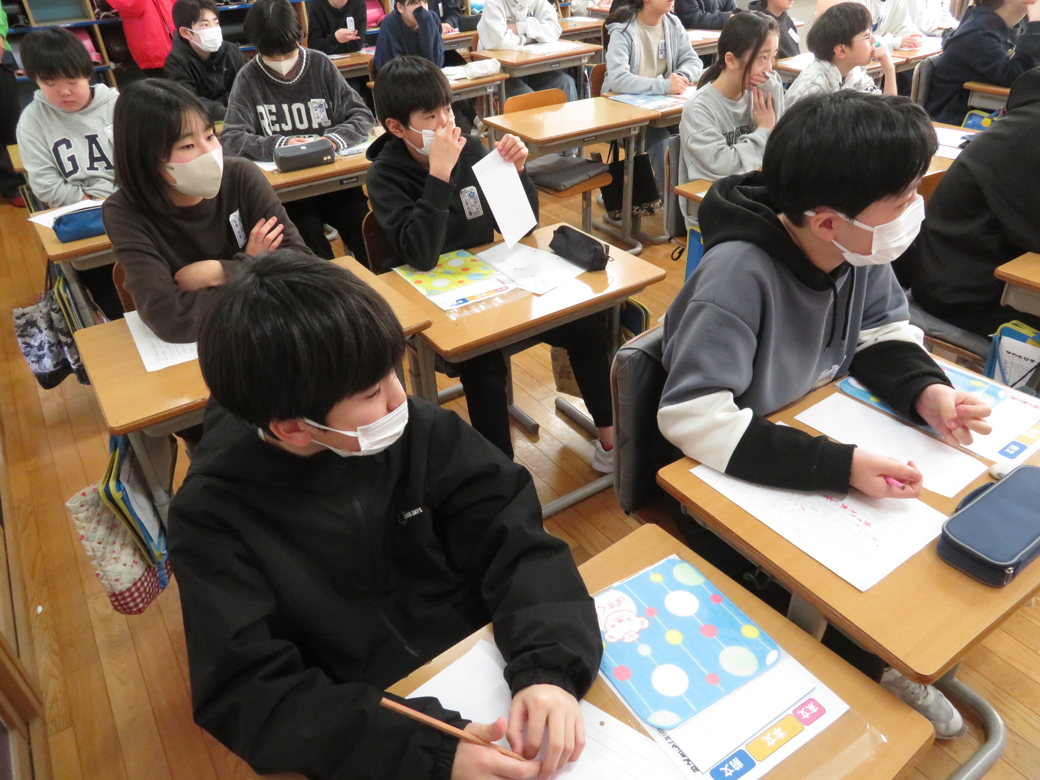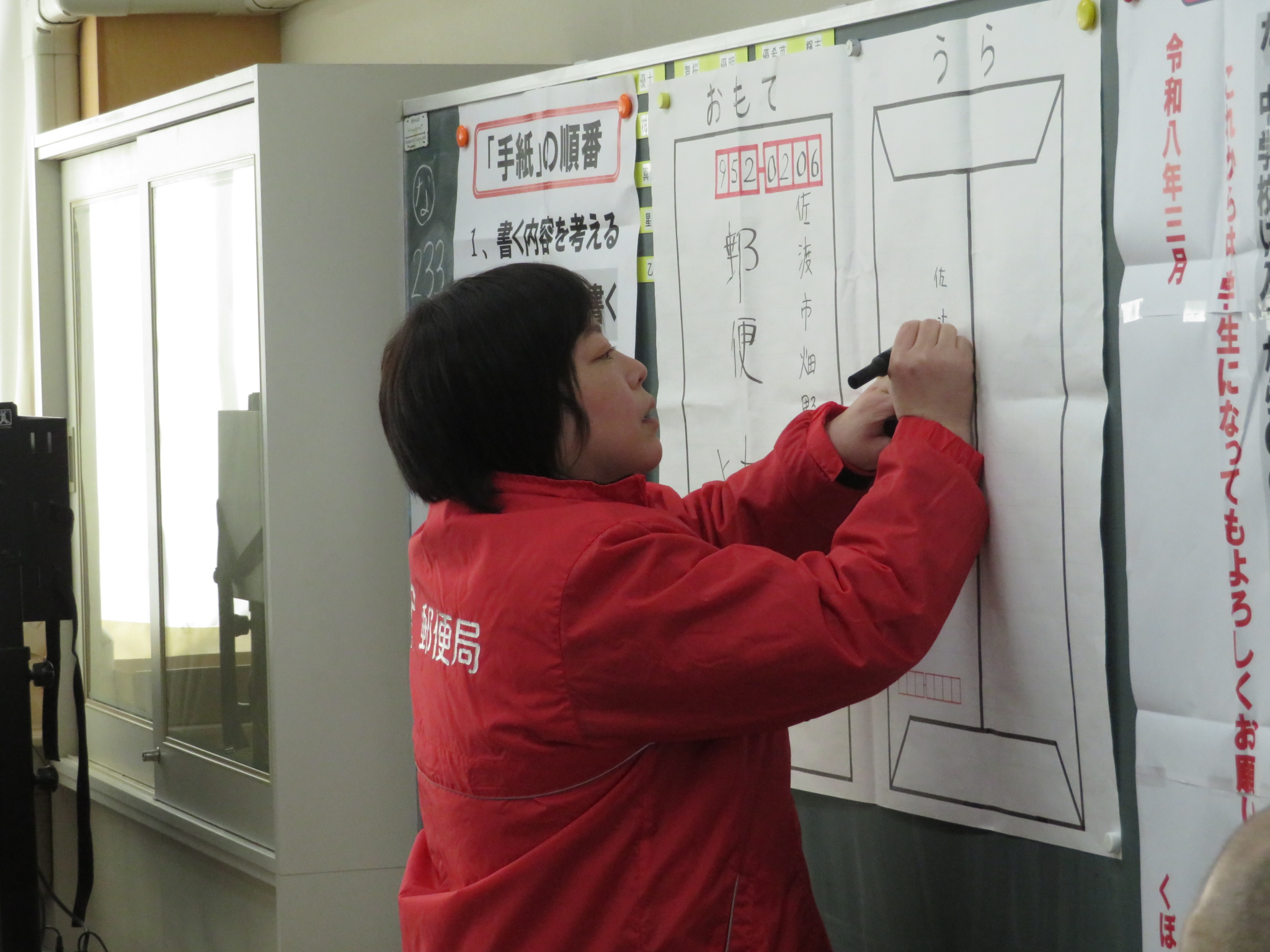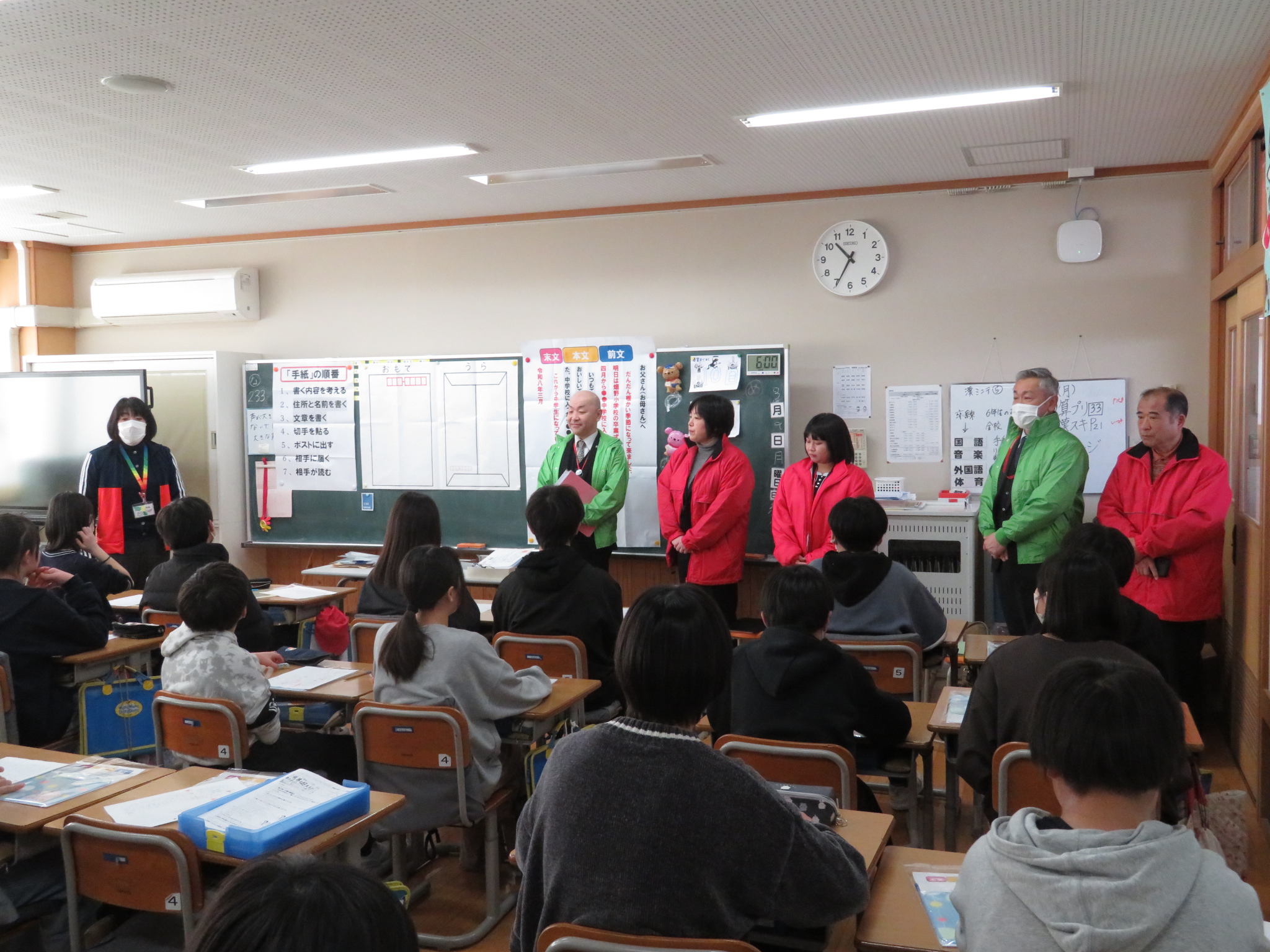 6年生の国語の時間に、郵便局の職員が5名来てくださって