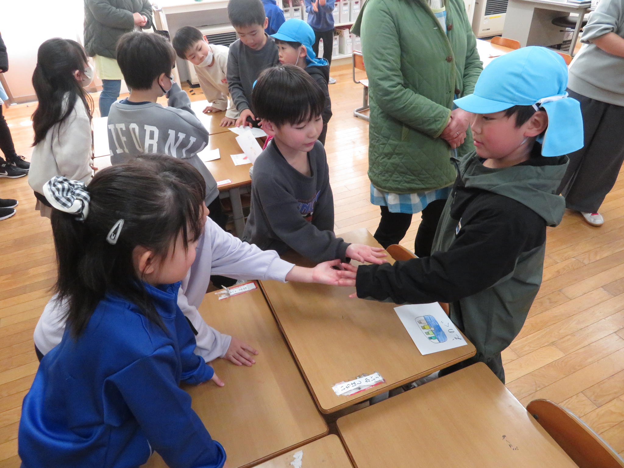 学校を見学して回った後に、1年生教室で「お店屋さん交流」をしました。