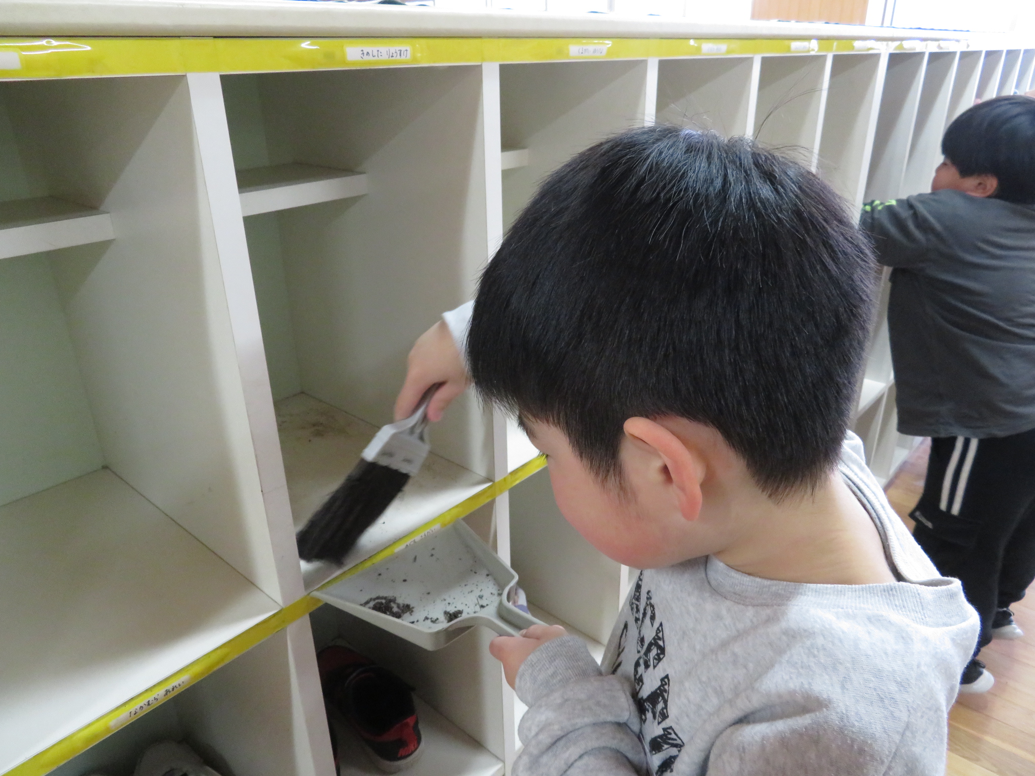 今日は2年生が下駄箱の清掃をしている様子をご紹介します。