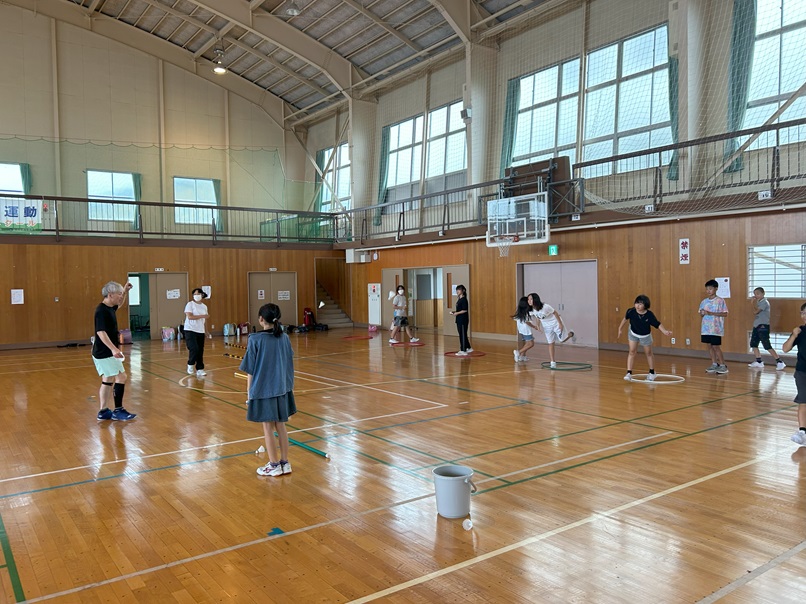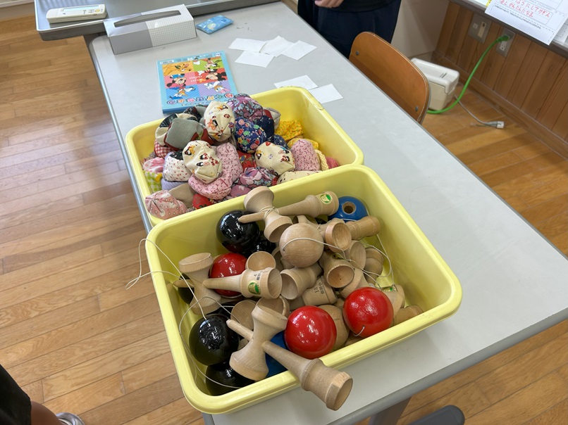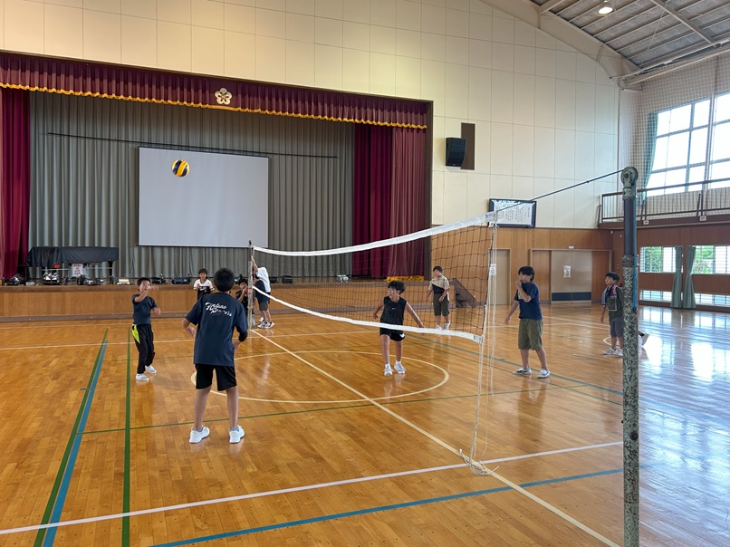 バドミントンクラブはラケット振りの基礎から。スポーツクラブはバレーボールを。室内クラブは駒回しやけん玉、お手玉を。
