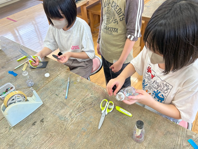 手芸クラブは巾着作りを。 料理クラブはポップコーン作りを。 図工クラブは万華鏡を作っていました。