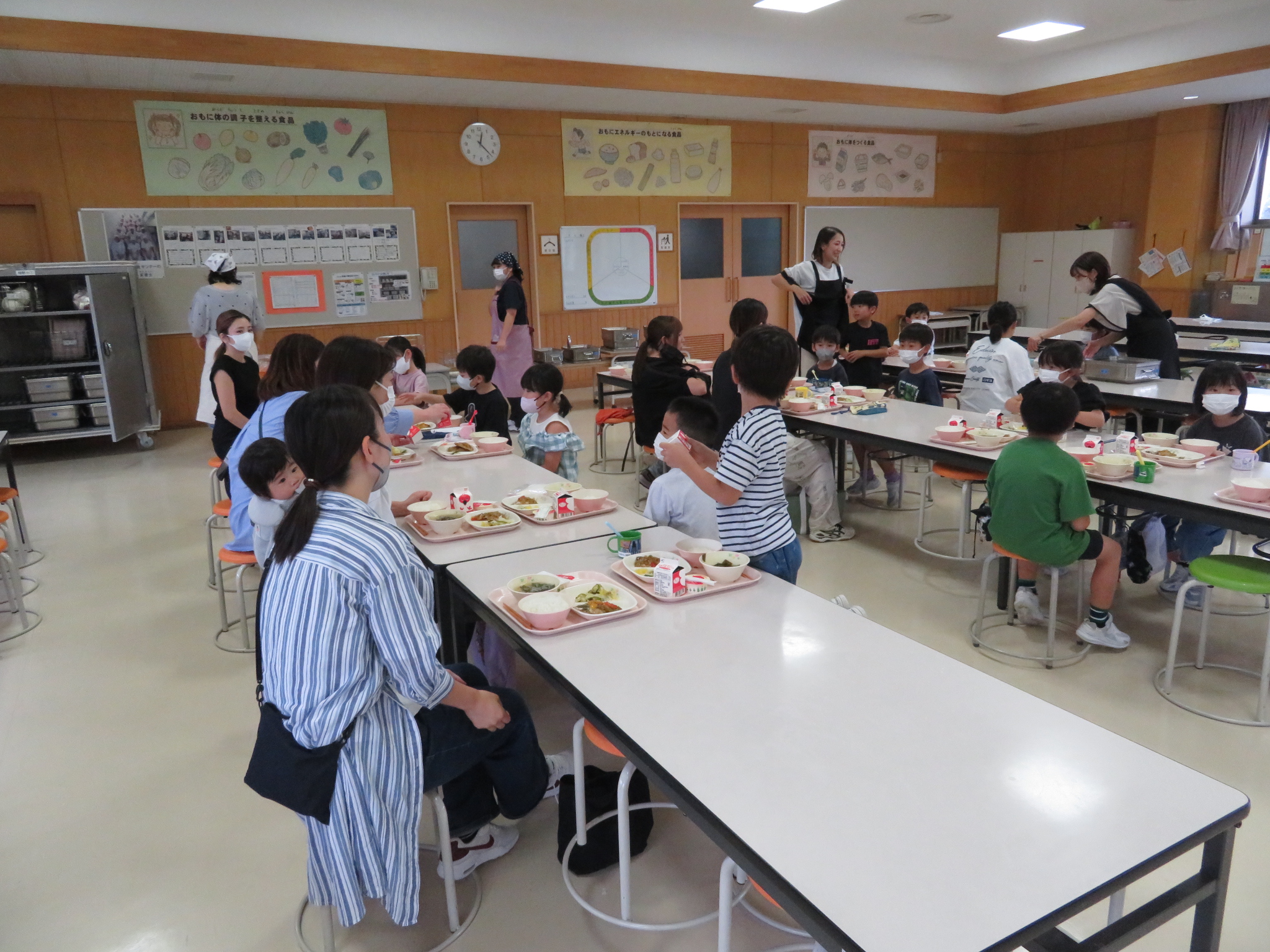 学校給食やお子さんの食事の様子を、一緒に食べながら理解していただくものです。