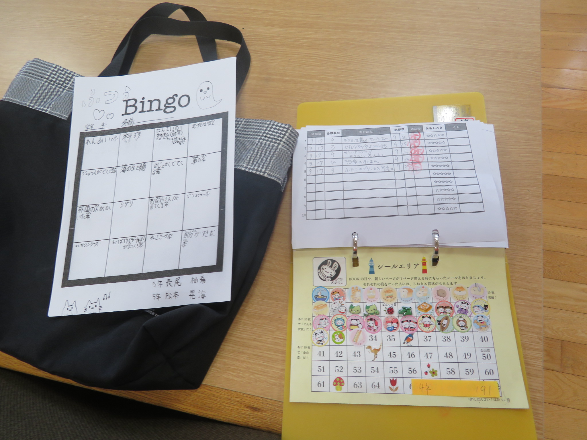 挑戦していて、簡単ビンゴカードから難しいビンゴカードに挑戦している子も
