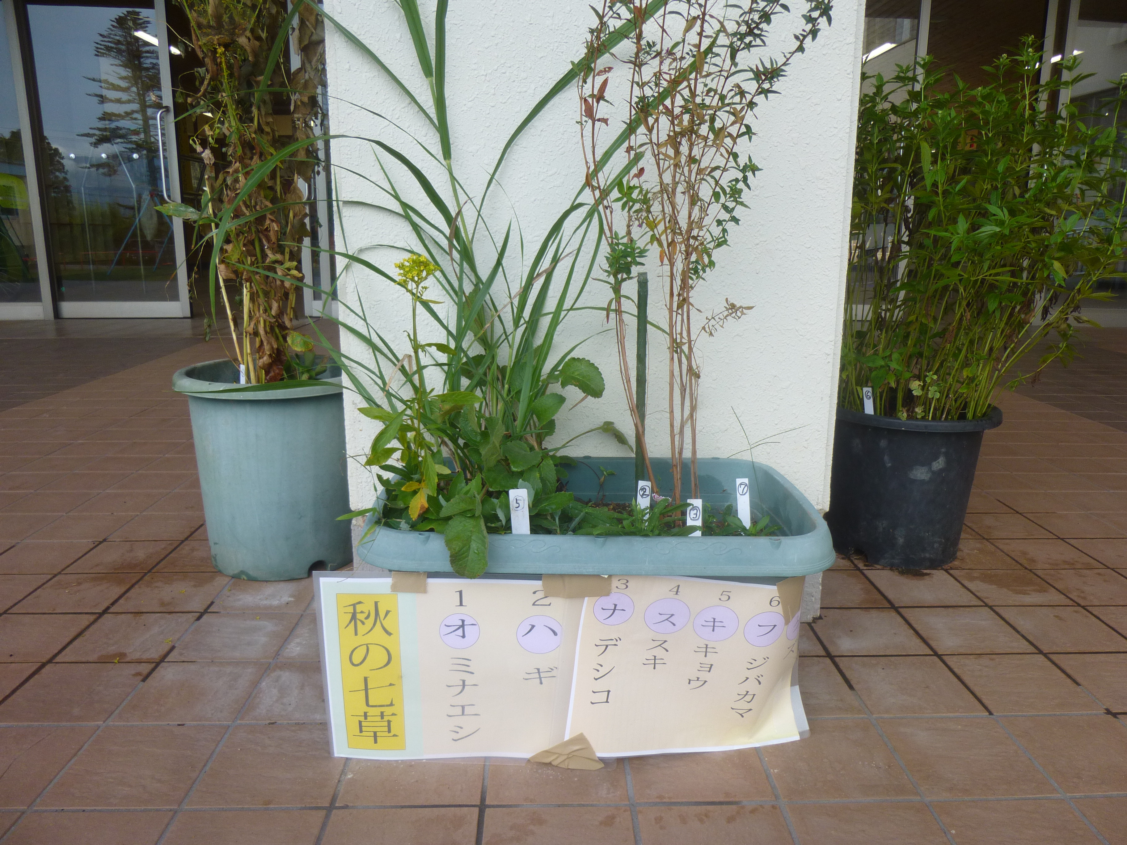 秋の七草が並べられています。