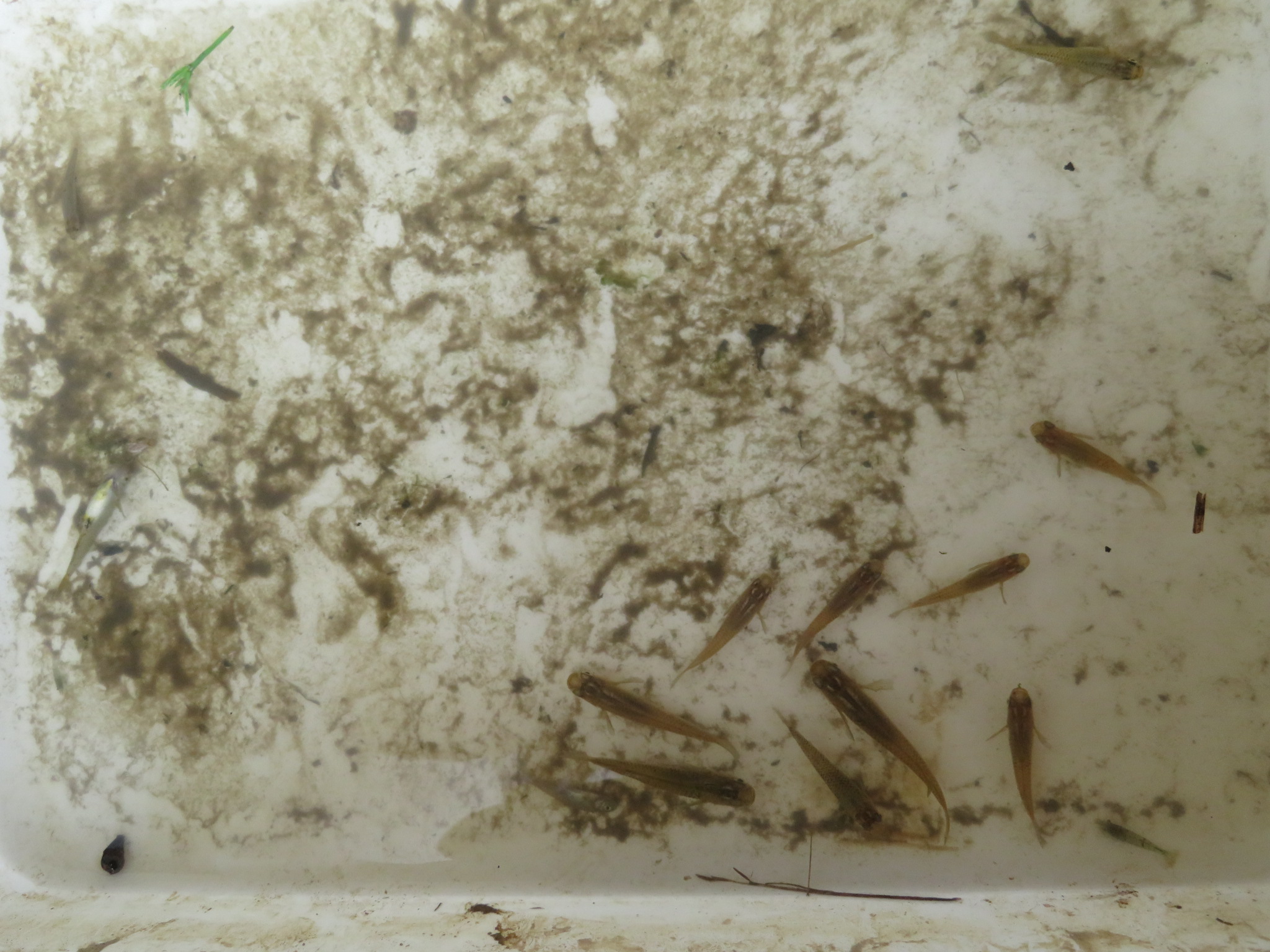 近くの小川に行って、メダカをたくさん捕まえてきました。