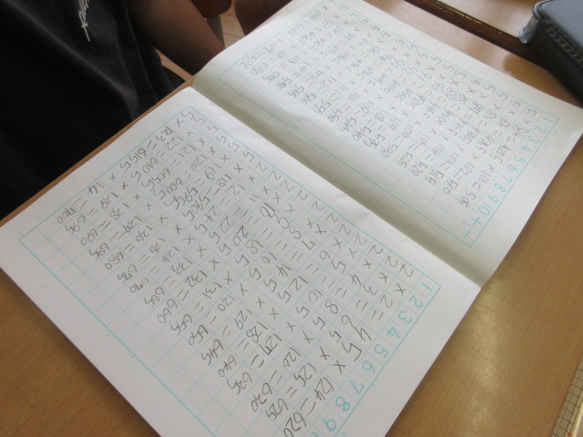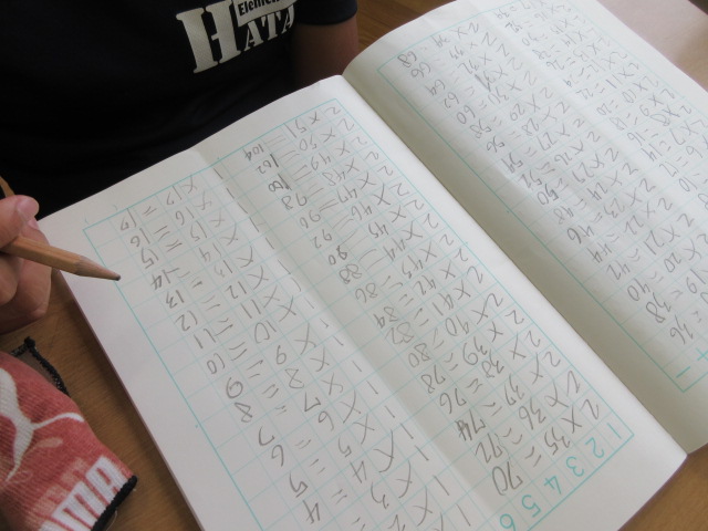 2年生の算数の授業「九九」の学習に取り組んでいました。かけ算の学習の基礎になる内容ですね。そんな中、子どもたちのノートを覗くと…「九九」の域をはるかに超え、「2の段が51!」「5の段が140‼」まで計算していました。子どもの「やってみたい!」のパワーは本当にすごい!
