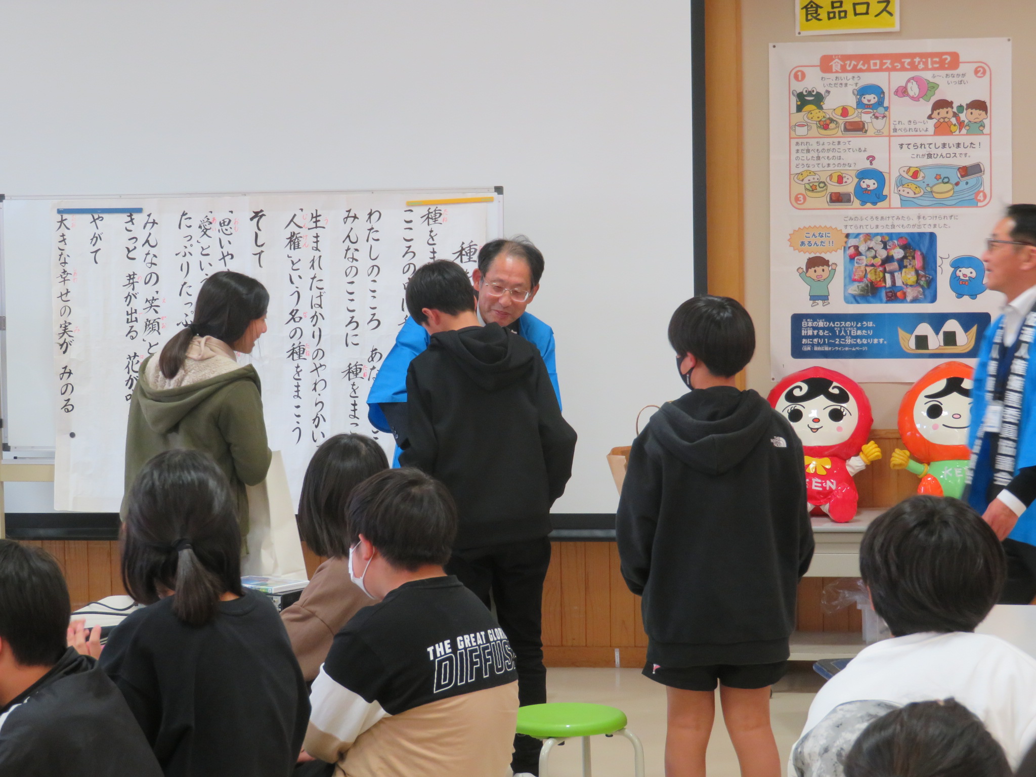 「種をまこう」のメッセージを全校に。 記念品もいただきました。