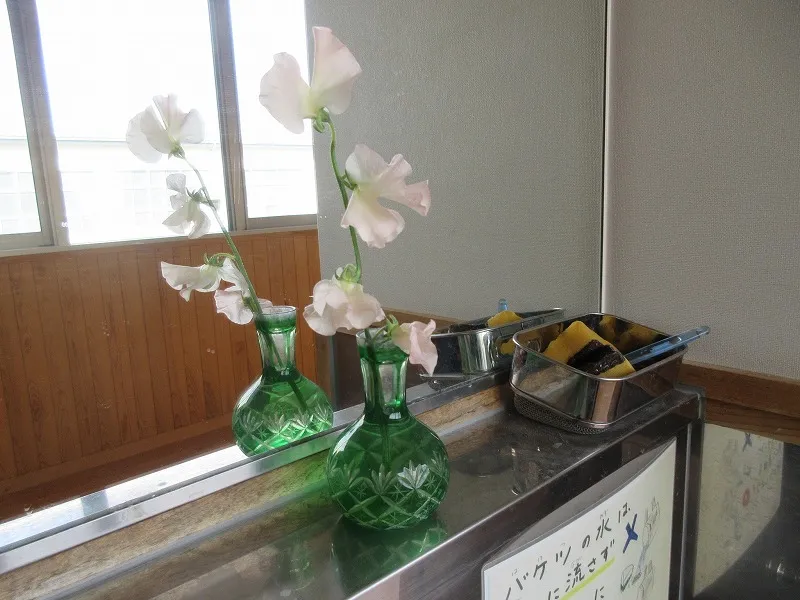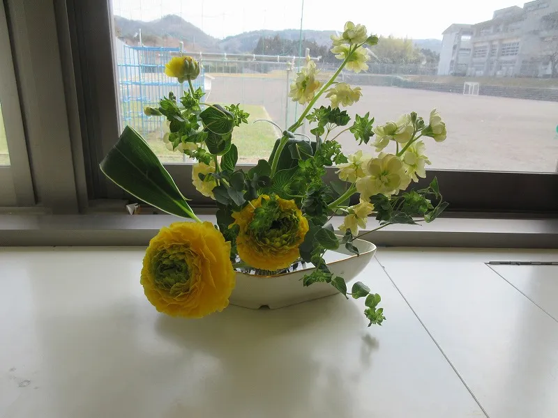 私事,教え子からもらった花束を初任者指導教員の先生が生けてくれました。