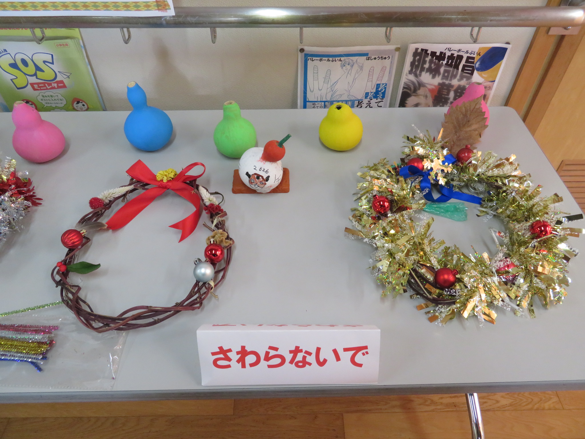 特別支援学級「あゆみ」で、制作したクリスマスやお正月飾りが