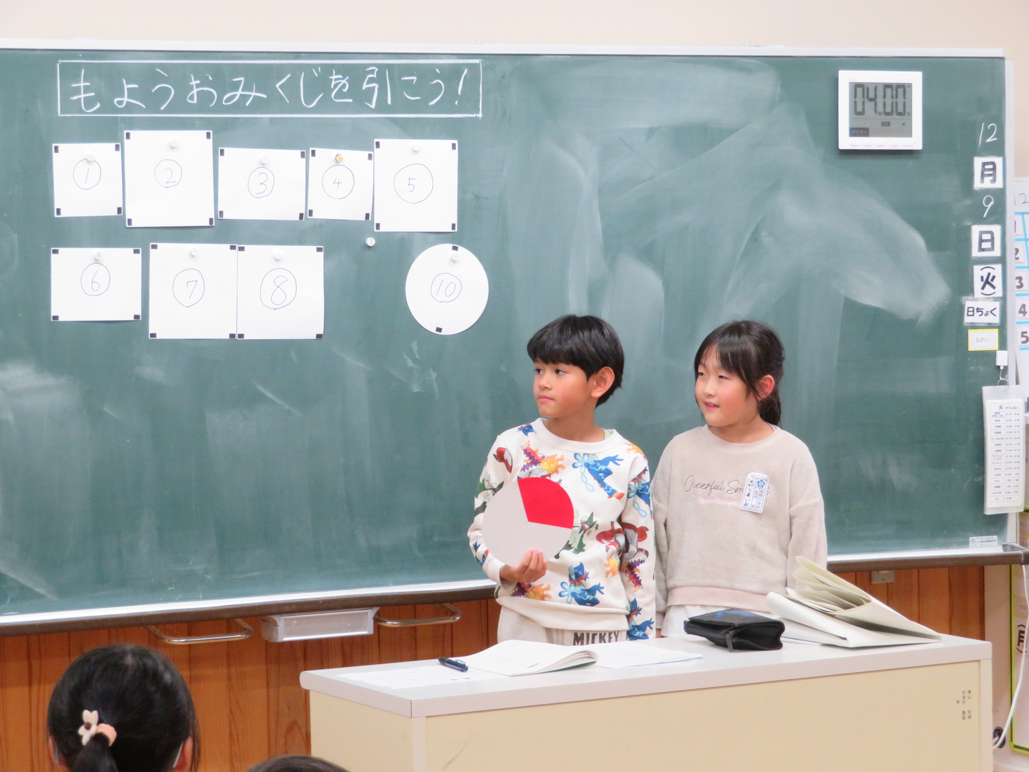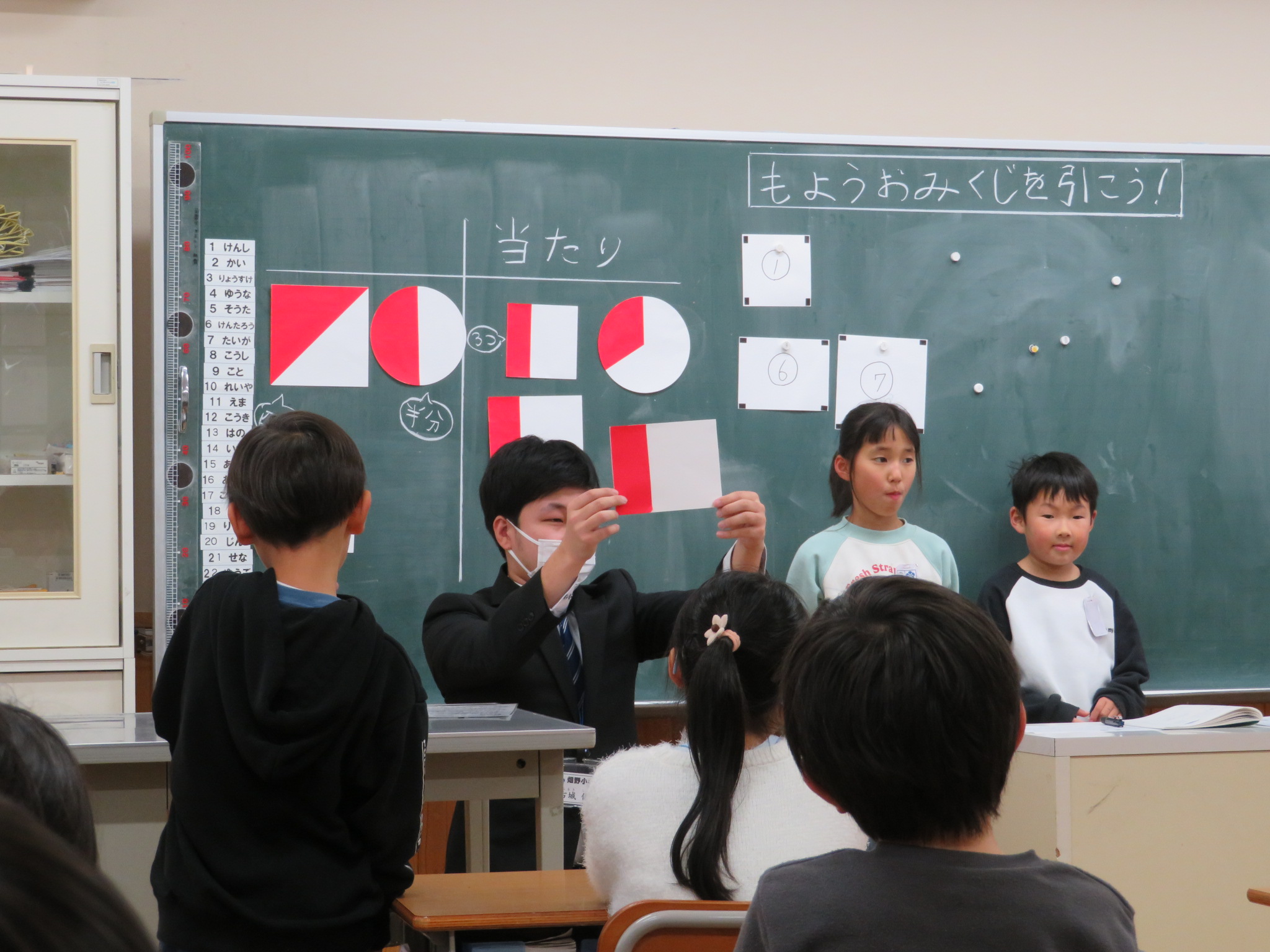 分数の2時間目で、模様おみくじを引いて当たりの模様の特徴から