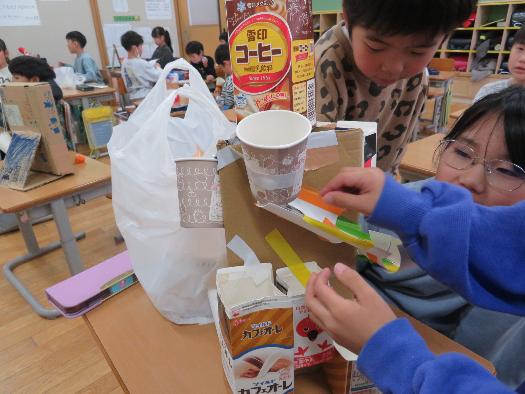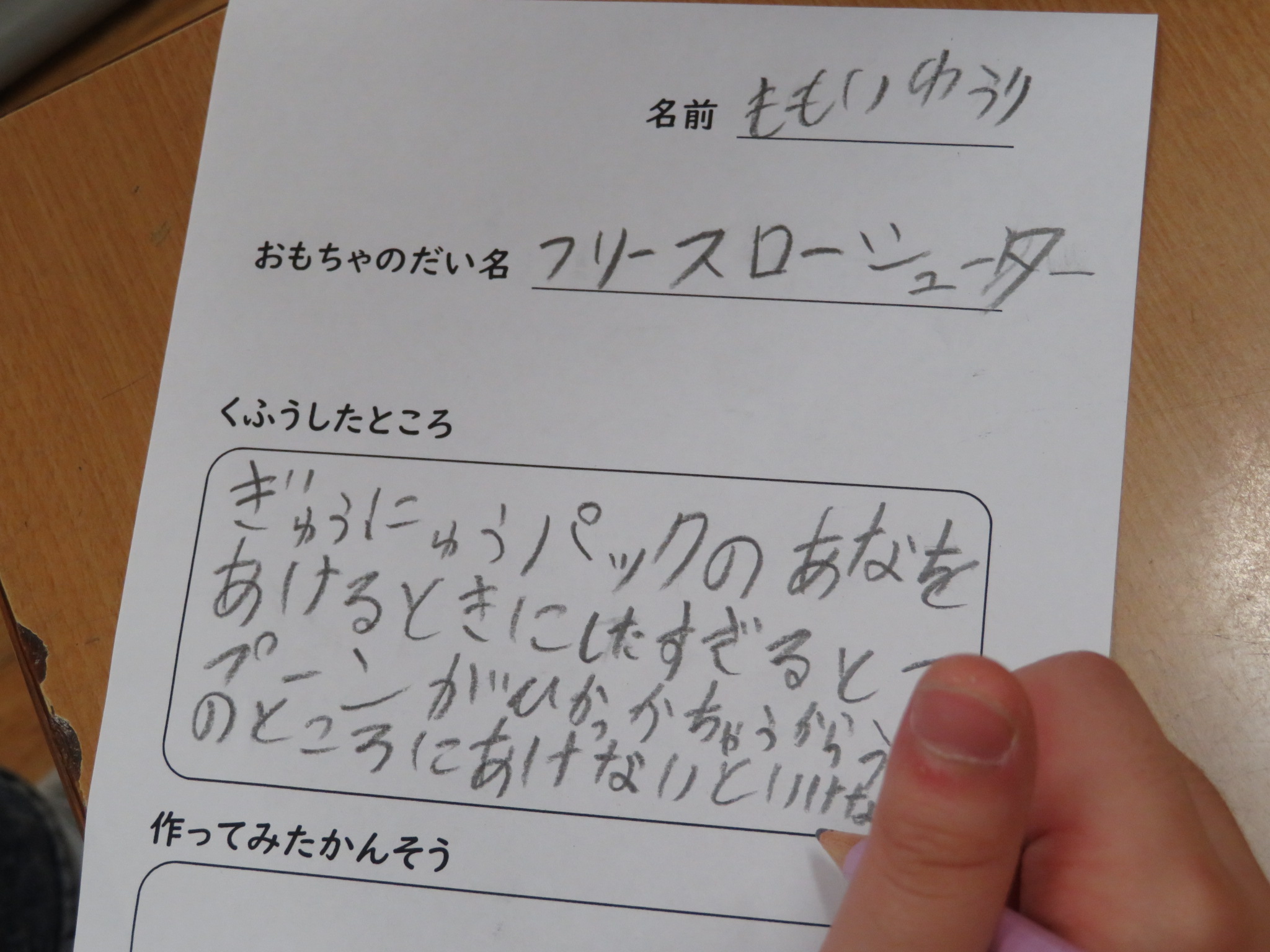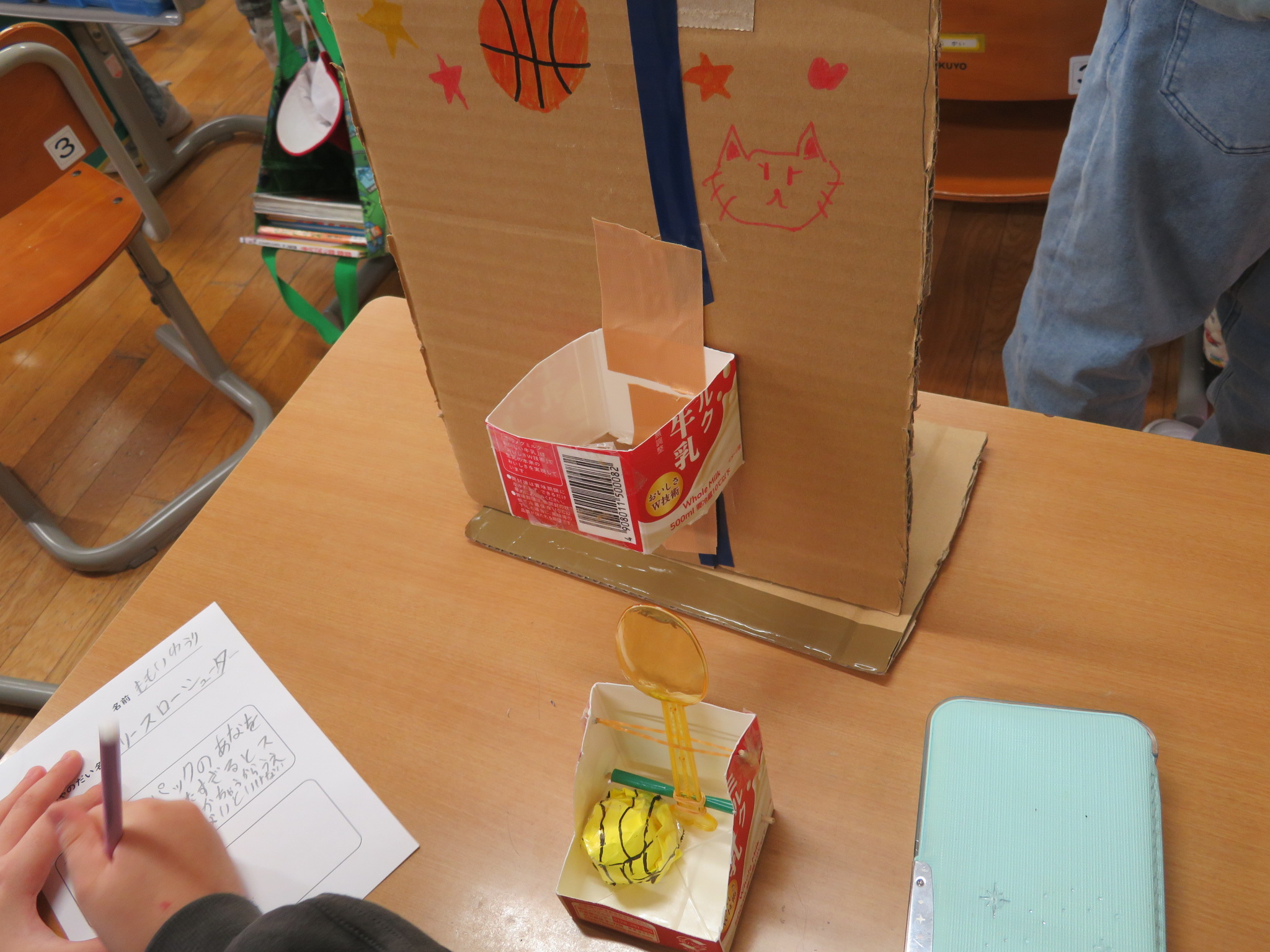 今日は、生活科で「うごくおもちゃ」の説明文を書いている