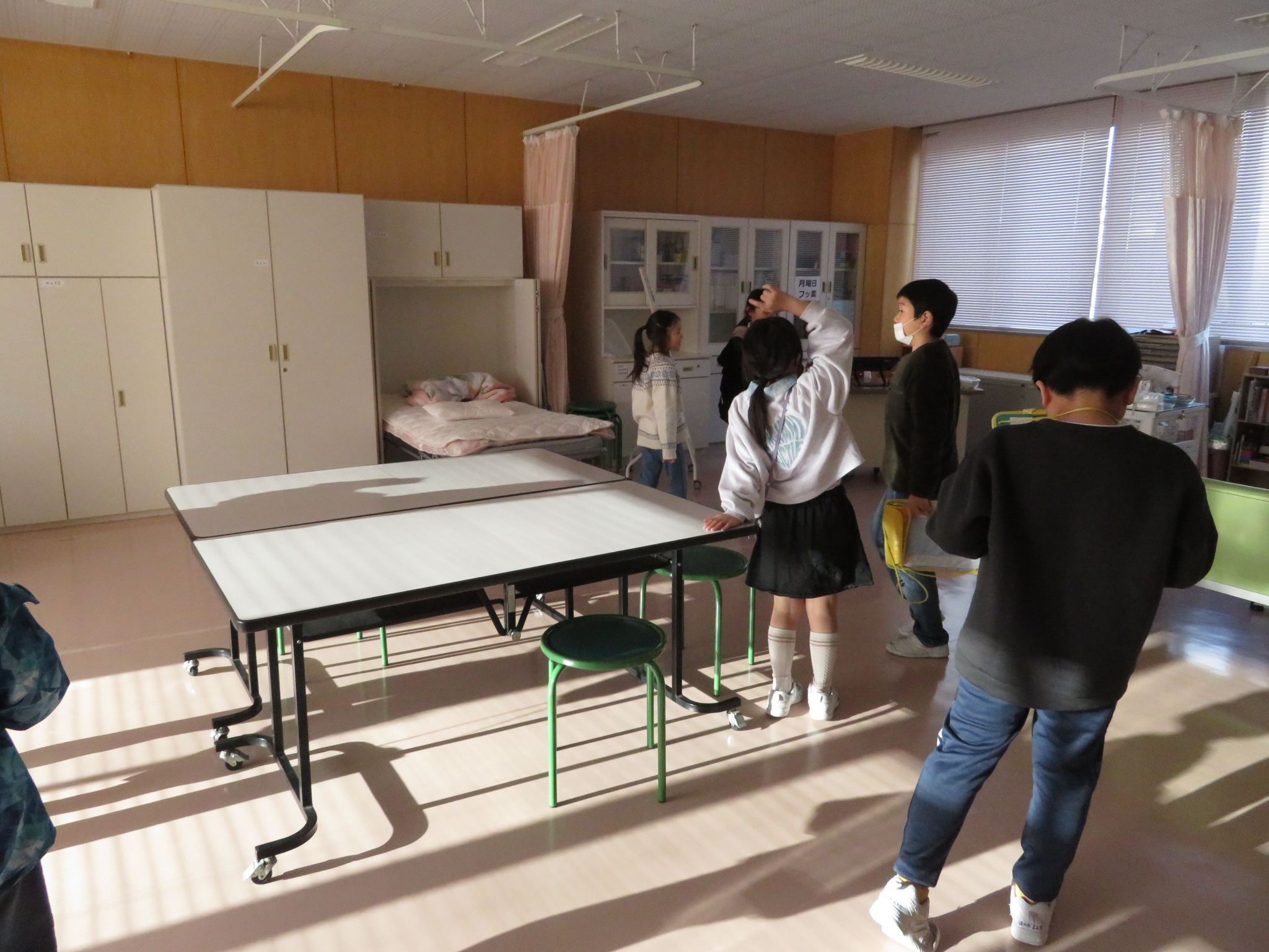 「保健室には消火器もある。非常出口もあるね。」