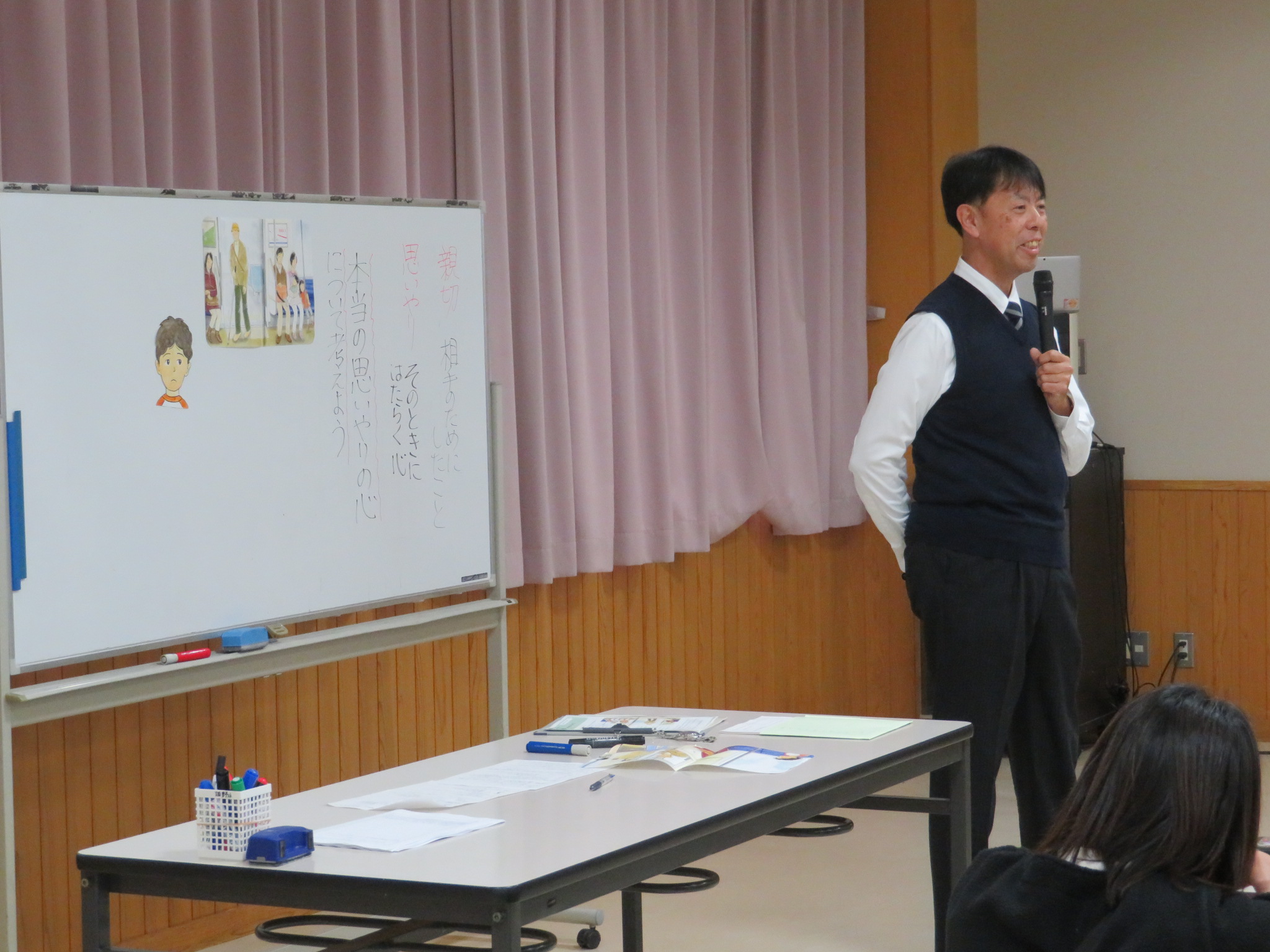 授業のテーマは「親切・思いやり」です。こちらが親切だと思って